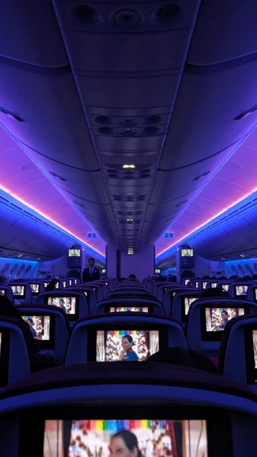 U avion ulazimo bez problema, a unutra me dočekuje poprilično iznenađenje! Sjevši na mjesto, do mene dolazi stjuard, govoreći mi kako mi je na cijelome letu na raspolaganju za što god treba i da na letu imaju posebna mala kolica bude li mi potrebno ići na wc. To je po prvi put da takvo što čujem ili doživljavam, s obzirom da aviokompanije obično nemaju praksu držanja kolica u kabini. Zahvaljujem se i tražim dekicu, s pretpostavkom da će me ubiti s klimom. Ipak letimo četiri i pol sata!