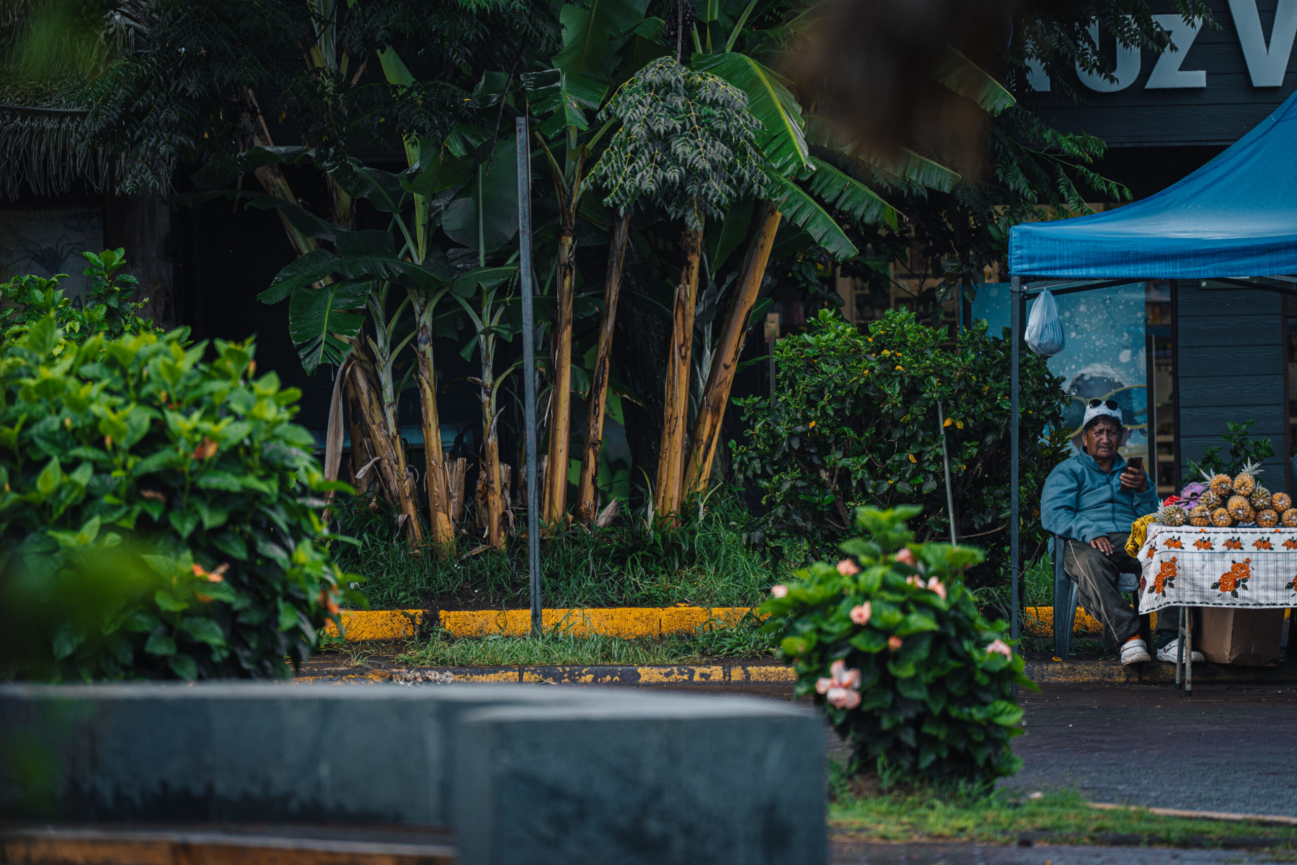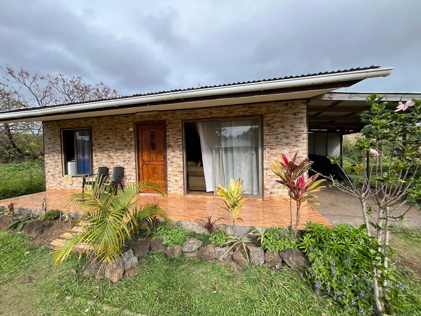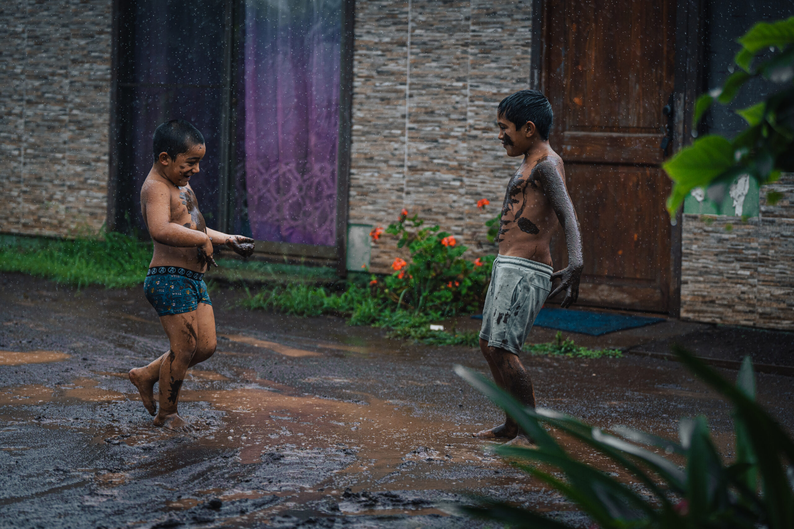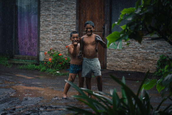 Iako nam je plan bio odmah prošetati do grada, nešto pojesti, kupiti karte za park i pronaći auto za najam, u tome nas sprječava jaka kiša koja se u svega par minuta spušta s neba. Osim toga, nestaje struje pa nam ne preostaje ništa nego promatrati djecu koja se ispred našeg bungalova igraju u blatu. Niti ne uspjevši isprocesuirati sve doživljeno do sad, na ulazna nam vrata stiže Patricia i ispaljuje “for my guests” stavljajući punu šaku trave na naš stol! Priznajem, momentalno zaboravljam na cvjetni vijenac shvativši da je ovo “cvijeće” puno bolje, a i originalnije!