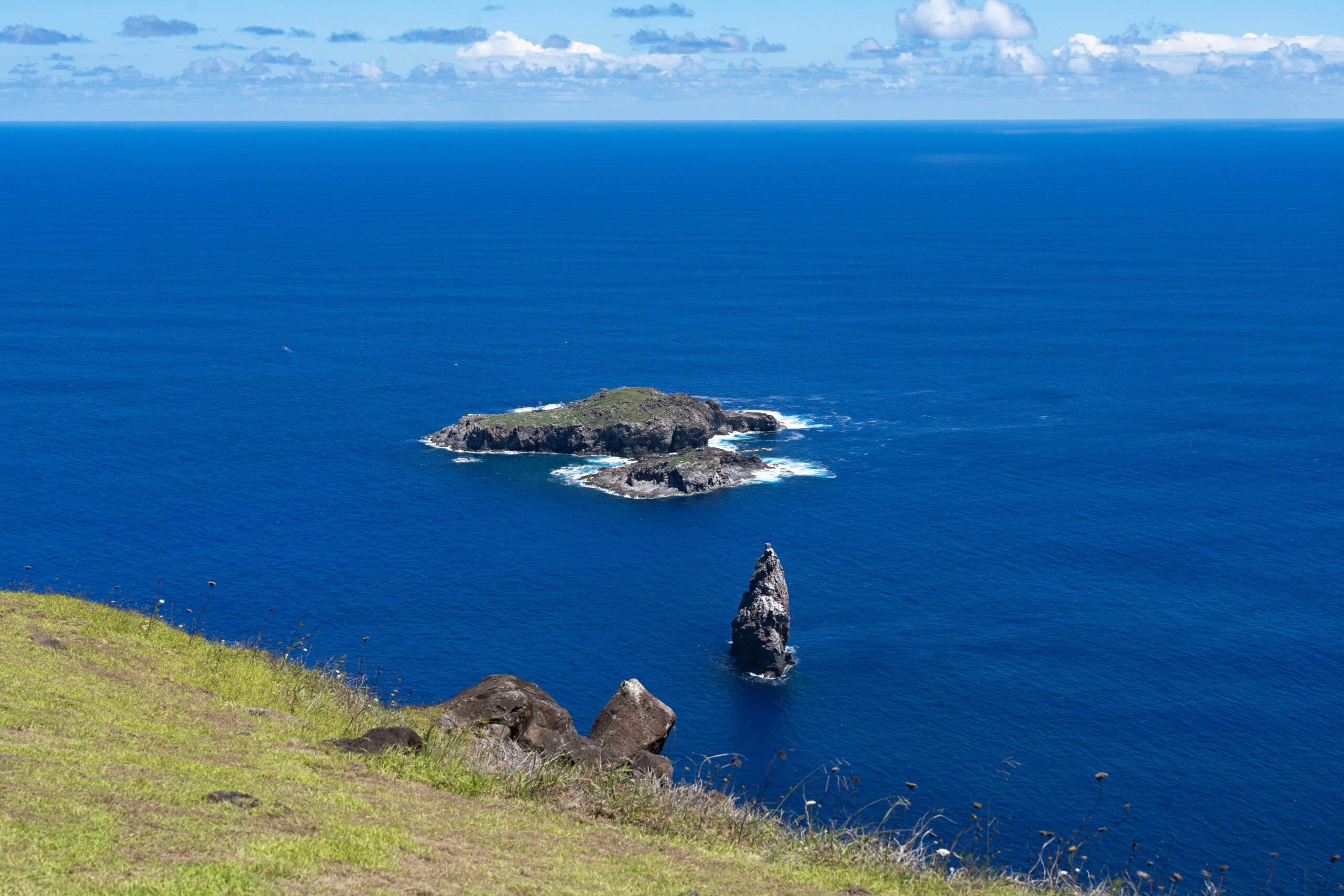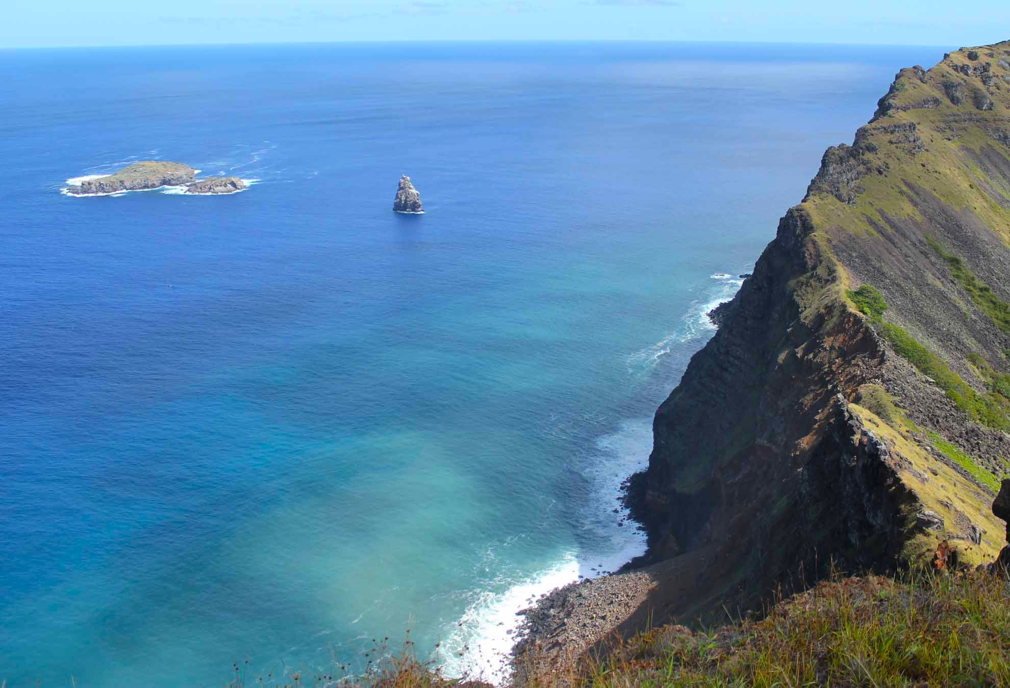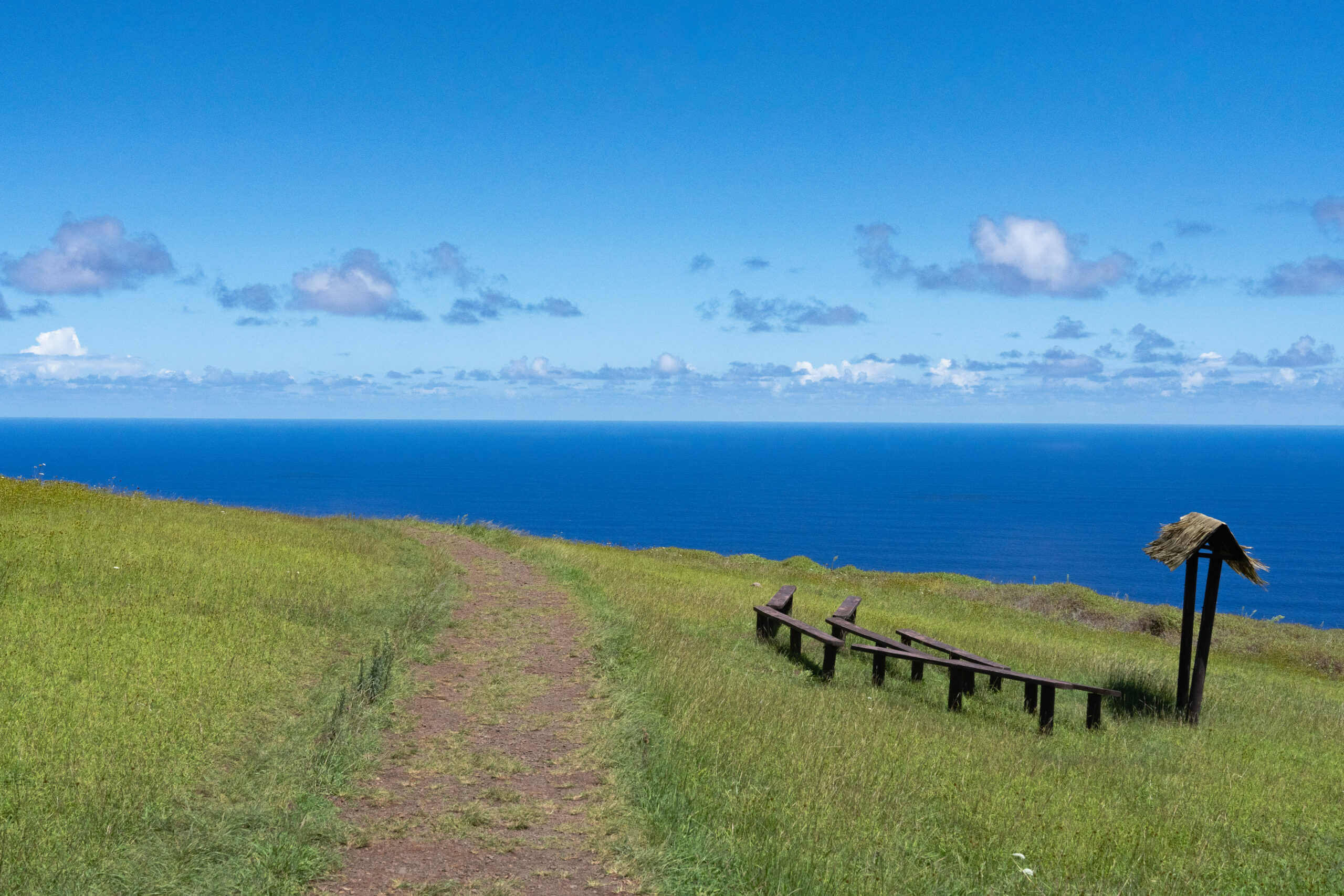 U centru se ne zadržavamo dugo te uskoro izlazimo van na drugu stranu na kojoj nas dočekuje pomalo nestvaran pogled. Spoj svijetlo plavog neba, tamno plavog mora i tamno zelene trave daje nesvakidašnji prizor i kontrast. U cijeloj pustinji oceana ne pronalazim niti jedan otok, kao niti brod, već samo beskrajno plavetnilo. Ovakav pogled nisam doživio niti na Palagruži sa koje se otoci i kopno ipak vide.