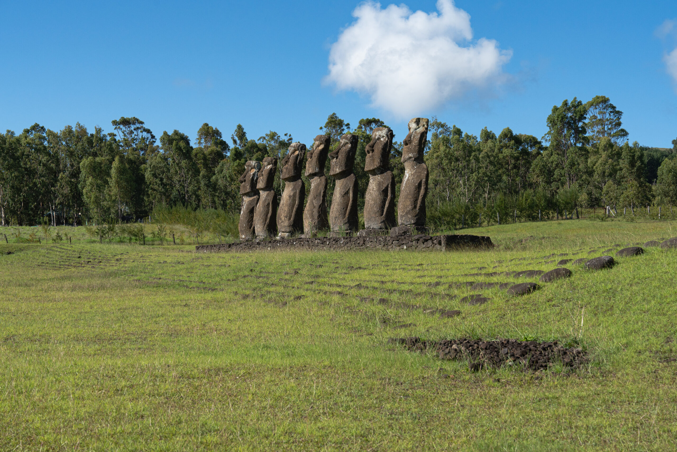 Iako je sve ovo što smo do sada vidjeli bilo iznimno zanimljivo i predstavljalo dozu mistike, pravo oduševljenje osjećamo dolaskom na sljedeći lokalitet. U podnožju vulkana Teravaka i najvišeg vrha otoka dočekuje nas prizor za pamćenje, sedam velikih moaia na postolju zvanom Ahu.