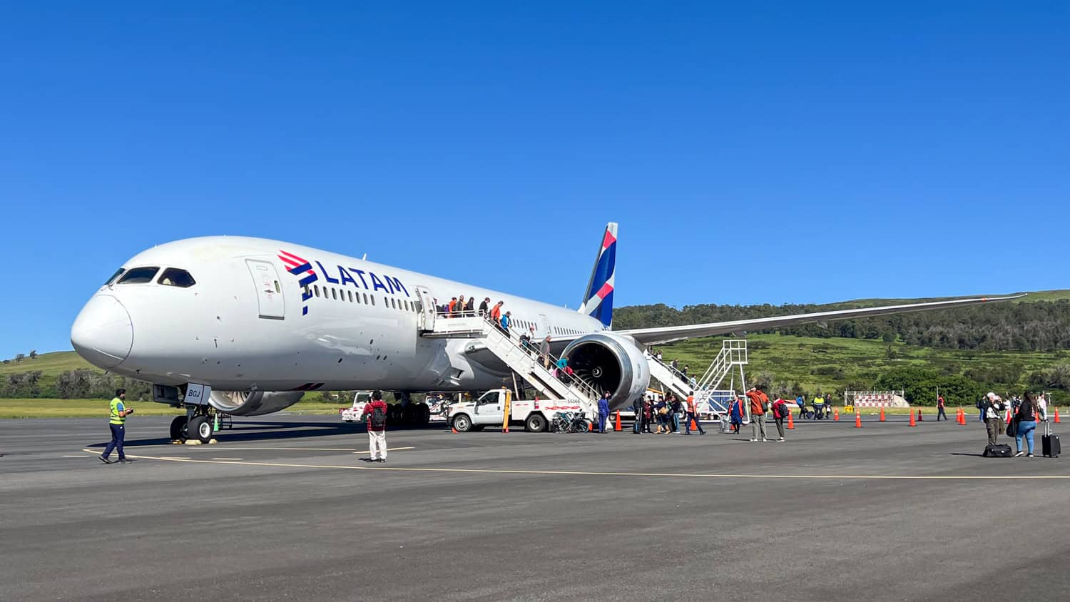 Na avion priključuju stepenice, što znači da rampe za kolica nema! Ne mogu ih kriviti, jer turista u kolicima ovdje vjerojatno vide jako rijetko. Iako po mene dolazi osoblje aerodroma, dečki me sami odlučuju iznijeti van. Prošavši stepenice, sjedam u kolica i to na Uskršnjem otoku, najudaljenijem mjestu na kojemu sam ikada bio! Naime, Uskršnji otok jedno je od najizoliranijih mjesta na svijetu, a od kopna Južne Amerike dijeli ga gotovo 3700 km! Njegov najbliže naseljeni susjed jest otok Pitcairn na zapadu, udaljen 1931 km i sa svega 50 stanovnika.