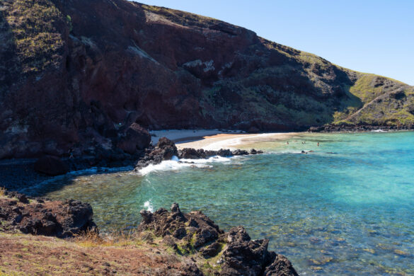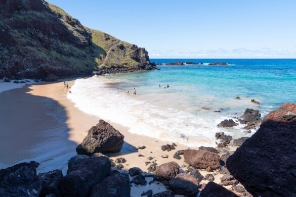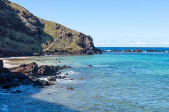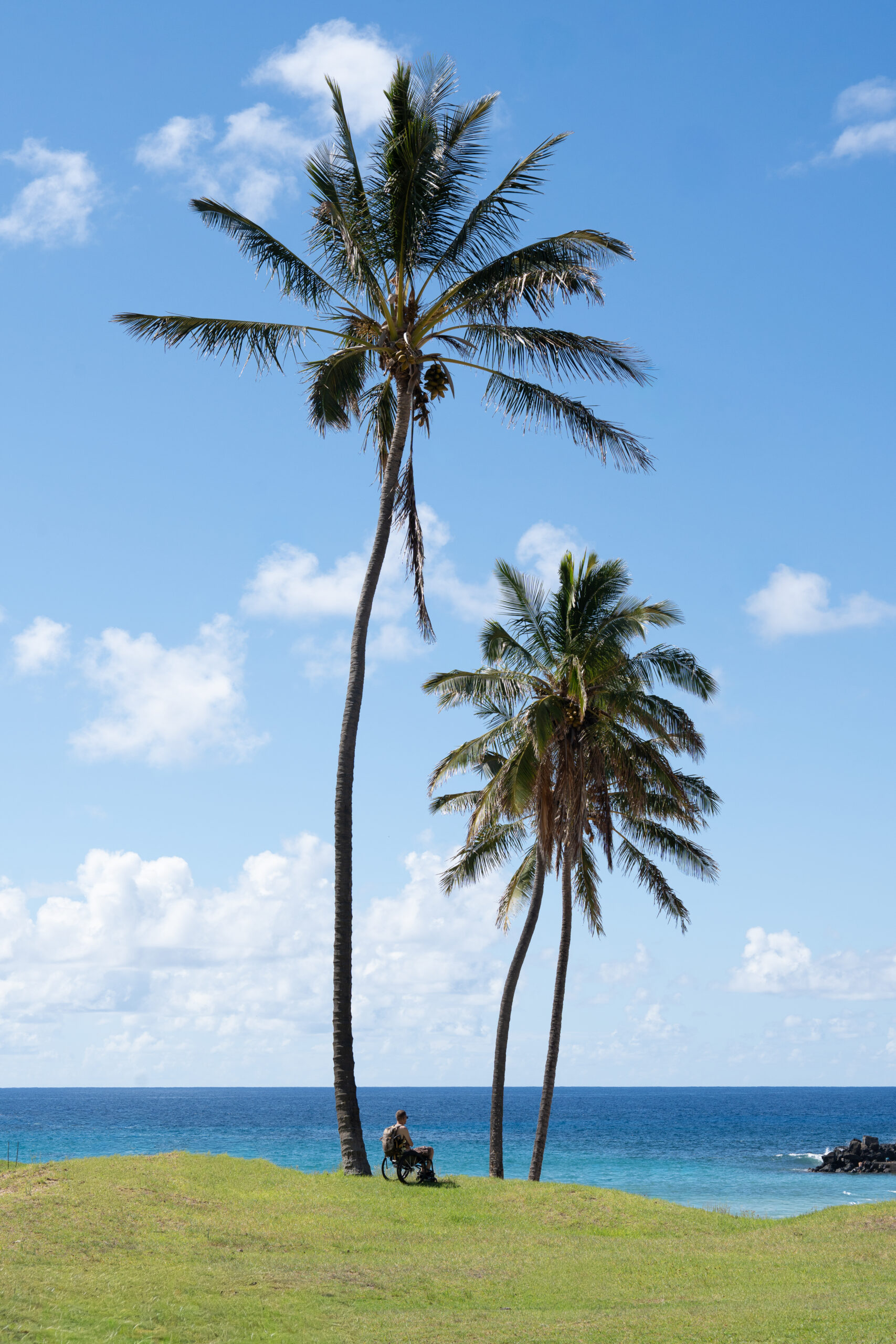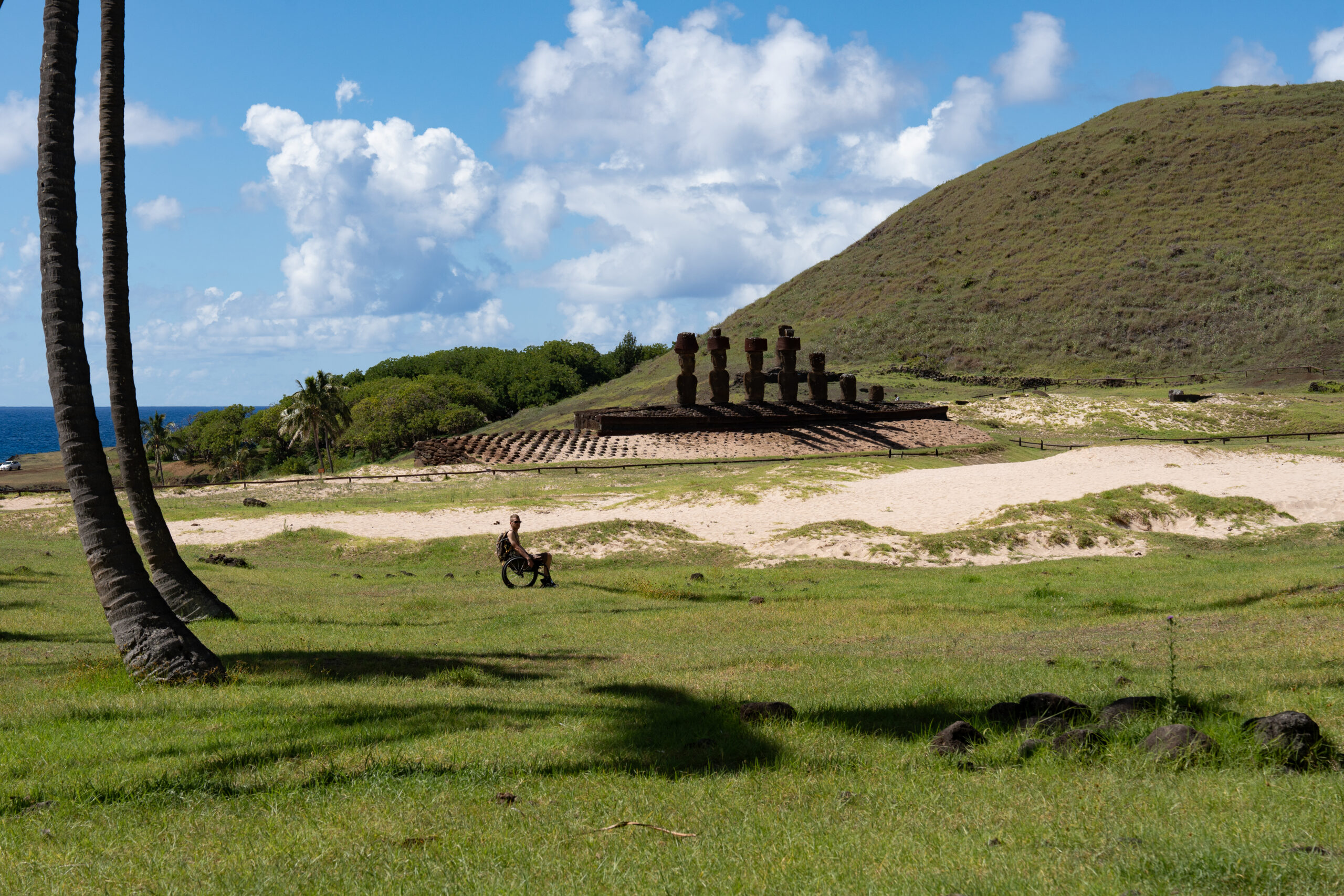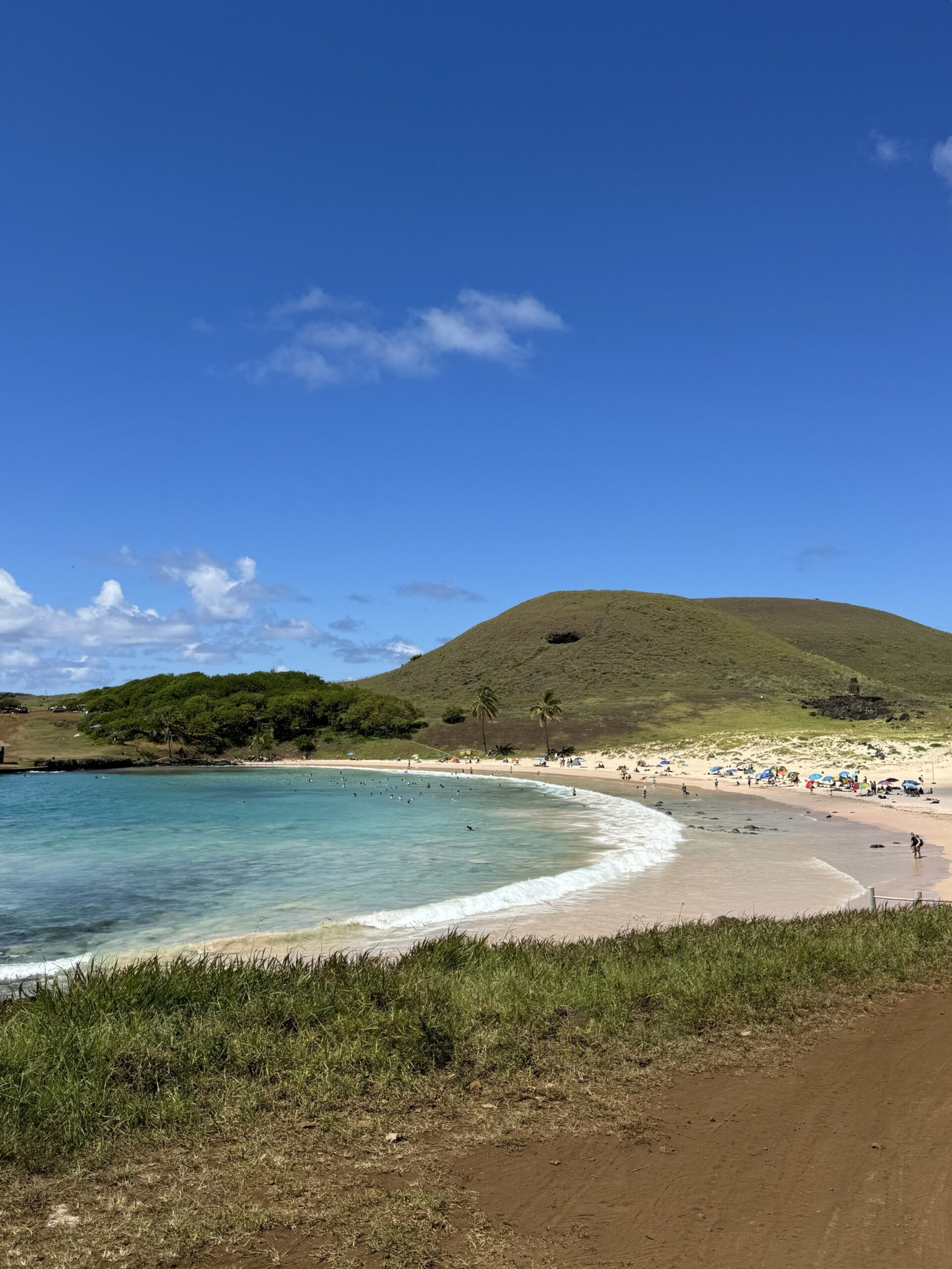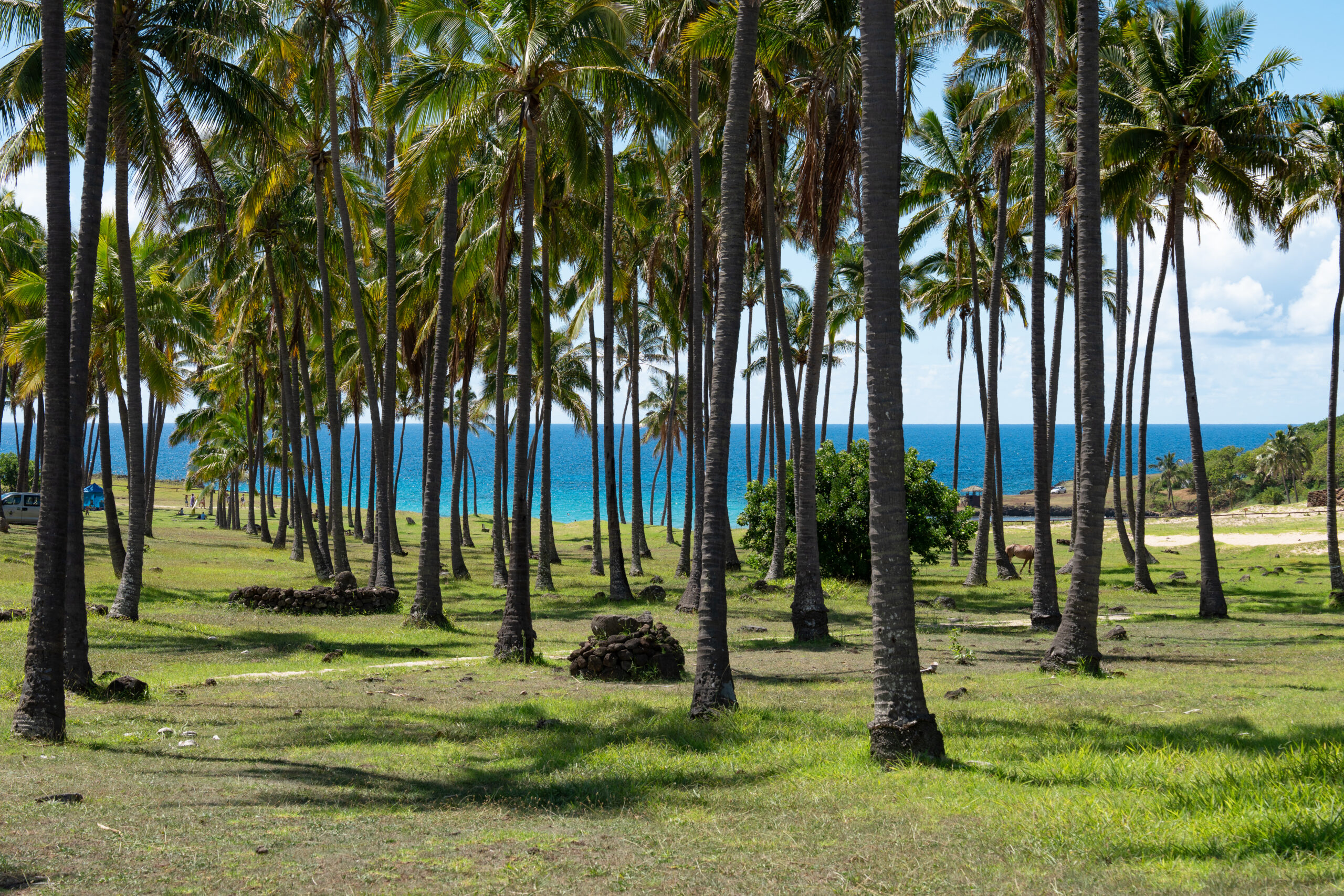 Sad mi je malo lakše i znajući da će sve biti u redu možemo nastaviti s lutanjem po otoku. Odlazimo u ljekarnu po lijekove i vraćamo se u smještaj po Alena i kako bi mi odmah namazali kiticu. Dana je još mnogo pa sjedamo u auto i dolazimo na plažu Anakena, najpoznatiju plažu na otoku i mjesto za koje se vjeruje da su se ovdje iskrcali prvi doseljenici. Meni sama plaža nije nešto spektakularna, ali su mi zato palme koje je okružuju prekrasne. Kako na otoku nema drveća, ove su navodno uvezene s Tahitija.