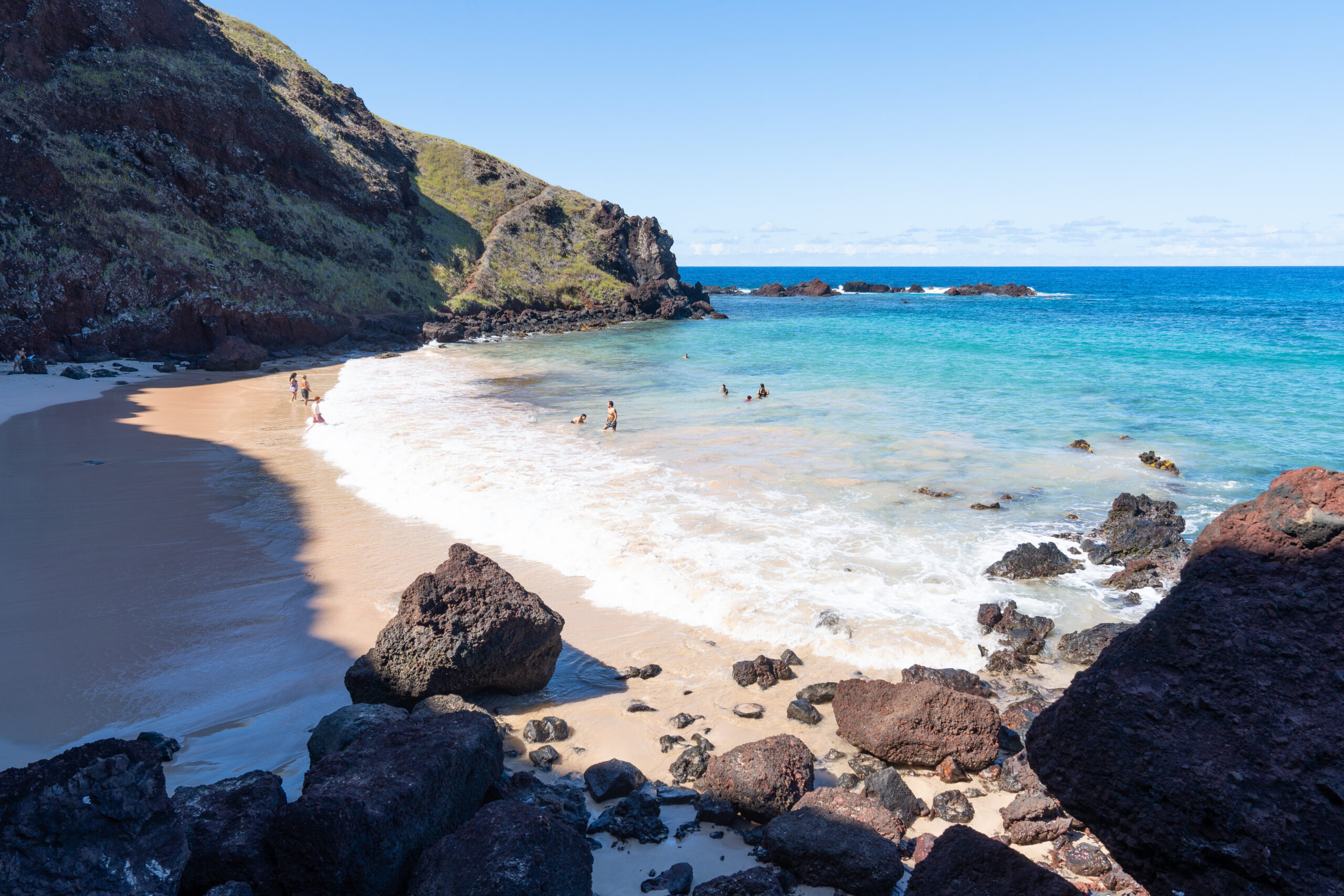 Nemamo baš nikakav plan i znamo jedino da želimo vidjeti plaže otoka i po mogućnosti okupati se. Krenuvši, promatram kartu i dolazim na ideju da pokušamo doći do špilje na sjeverozapadu otoka. Naravno, to nam baš i ne polazi za rukom, jer slušajući Google maps konstantno radimo krugove i izbijamo kod lokaliteta Tahai, onog za zalazak sunca.
