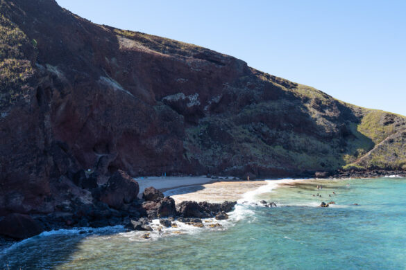 Dolaskom na parking plaže shvaćamo da do plaže s kolicima baš i nije jednostavno doći pa dečki odlaze u istraživanje, a ja ostajem u autu. Inače, iznad ove plaže postoje špilje, a prema arheološkim istraživanjima one su stanovnicima otoka nekada služile kao groblja i krematoriji. Veliki val koji je 2012. udario u litice kod plaže, otkrio je preko dvjesto godina stare i zakopane ljudske ostatke.