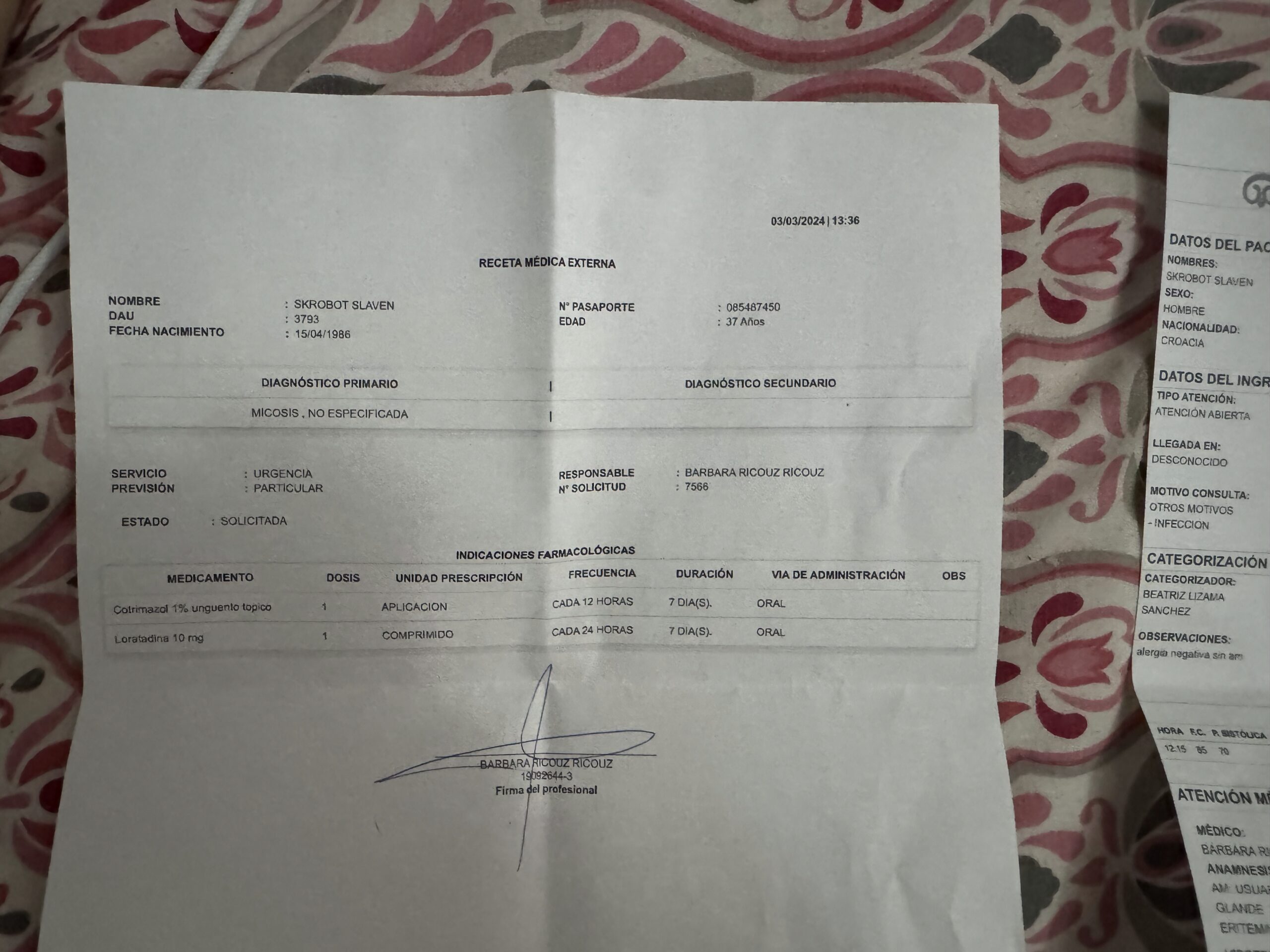 S obavljenim pozivom s majkom, zovem Miju. Objasnivši joj cijelu situaciju, pita ona mene; „oke, pa jesi spavao s nekom ženskom na putu“? Mislim si…zar i ti!? S njom se nalazimo u Santiagu za tri dana pa će mi sad, osim ostalih medicinskih potrepština morati donijeti i nešto za ovo, ako prije ne umrem!
