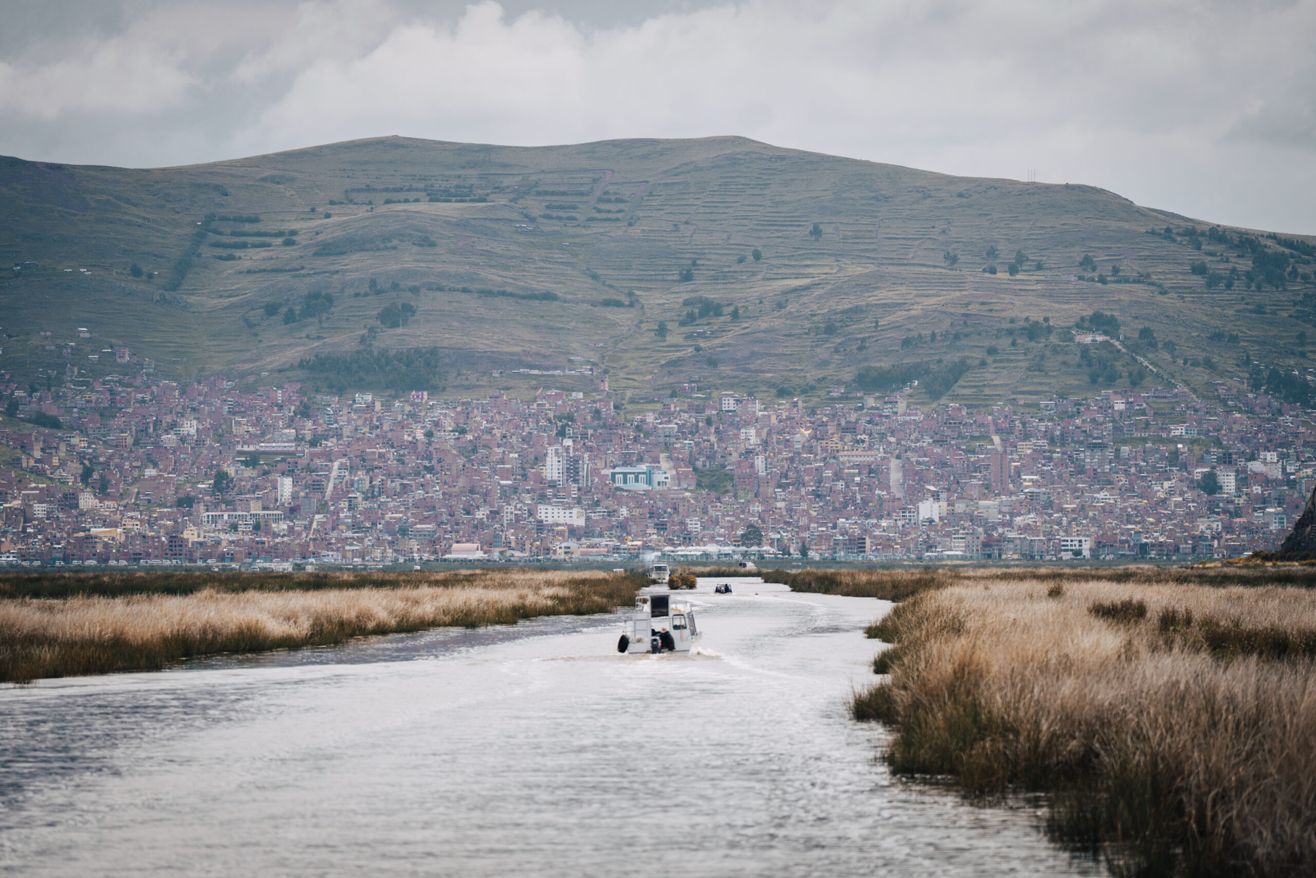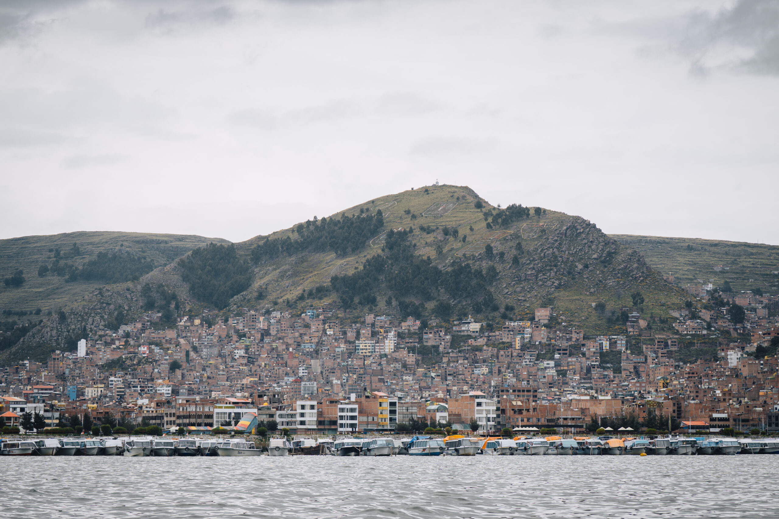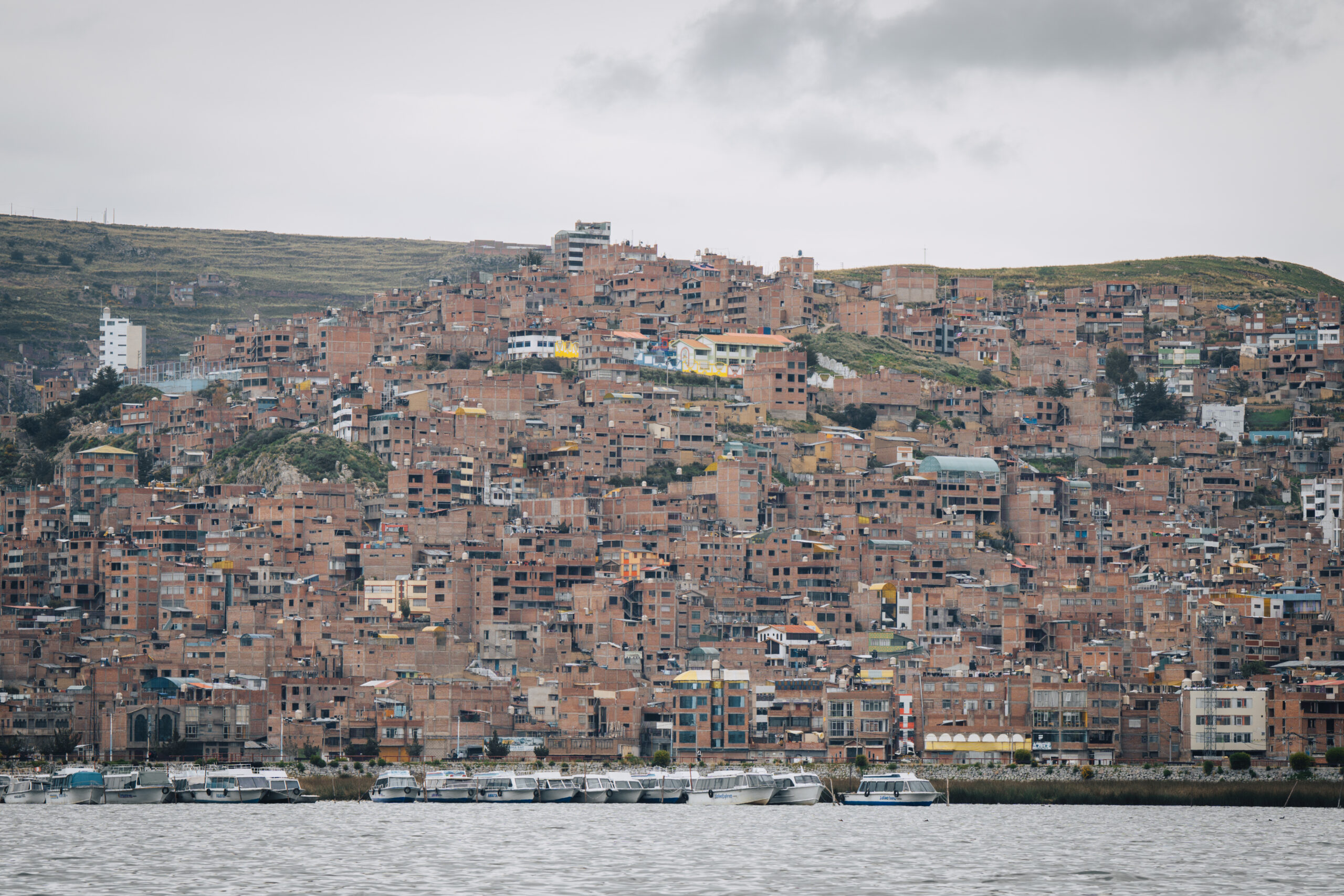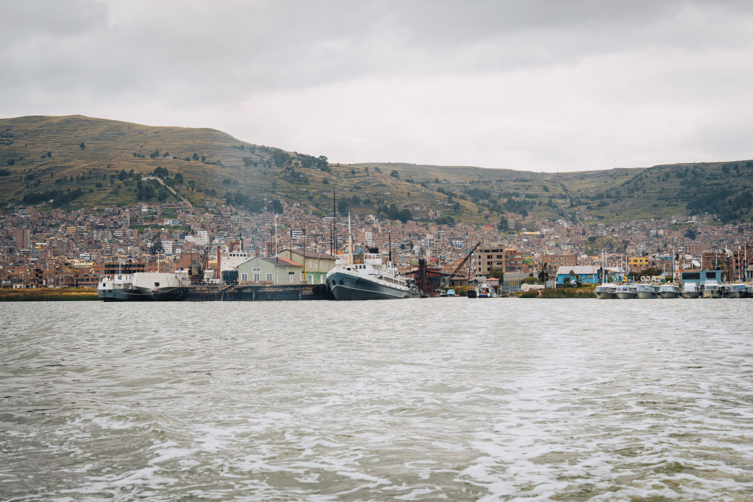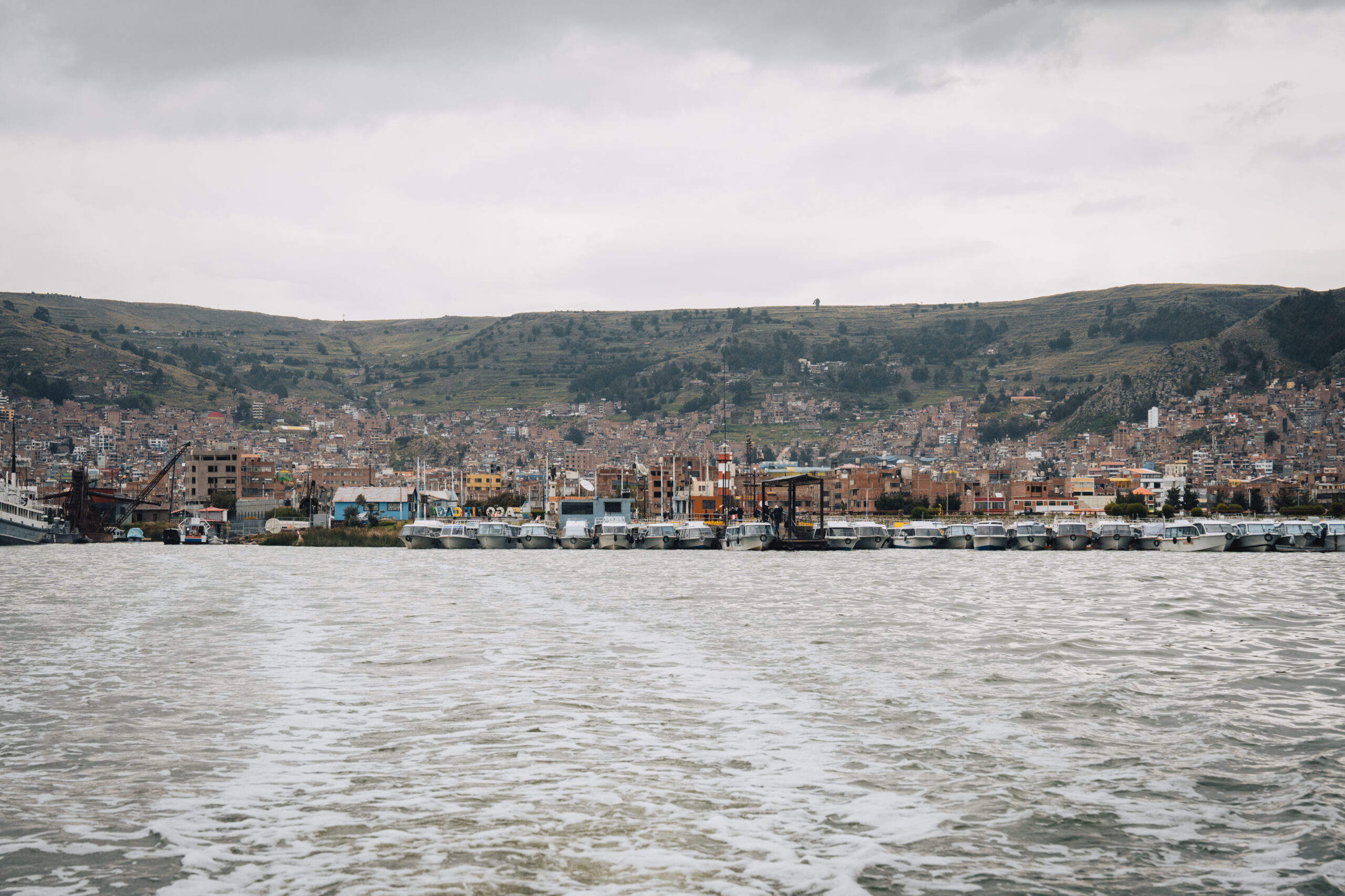 Smješteni smo na krmi broda pa jedino što vidim je ono „iza“ nas. Napustivši luku iz sve veće udaljenosti promatram tako Puno. Izgrađen je nekako u nizu, na brdu, a sve građevina kao i u gradovima Bolivije nemaju fasadu. Kao da nismo promijenili grad, a kamoli državu!