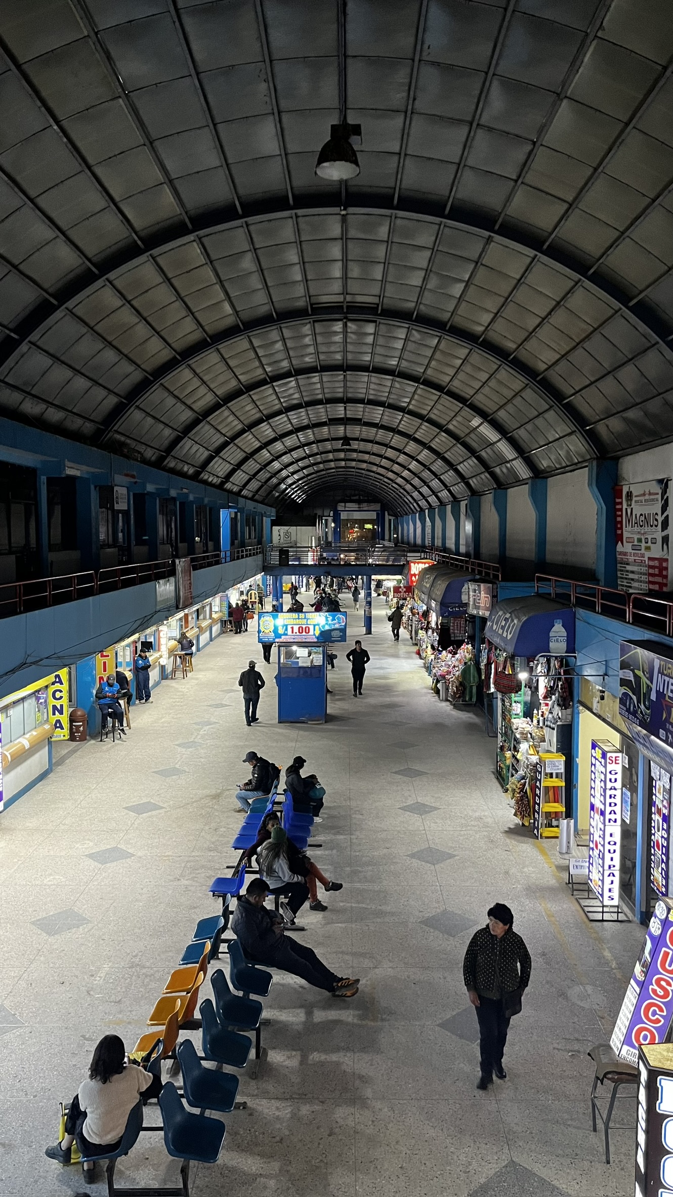 Iako bi čovjek po Oscarovim riječima u Juliaci očekivao kaos, dolaskom do velike zgrade autobusnog kolodvora dočekuje nas potpuna pustoš. Nešto kao i sinoć u Punu. Nigdje nikoga. Zgrada je ogromna, a takva je jer autobusni kolodvor dijeli prostor sa zatvorenom tržnicom. No, ulaskom unutra, sve je zatvoreno, zaštitne ograde su spuštene i svi „hodnici“ djeluju pomalo strašno. Slična atmosfera dočekuje nas i na kolodvoru. Ljudi nema, tek pokoji šalter je otvoren, a ispred svakog sjedi žena koja viče, ili zavija, da se bolje izrazim, pokušavajući prodati karte. Pitam se kome, ako nikoga nema? Zvuči ta jeka i odzvanjanje zvuka u takvom prostoru pomalo kao da smo ušli u neku ukletu kuću. Na našu žalost, ovdje moramo biti sljedeća dva i pol sata…