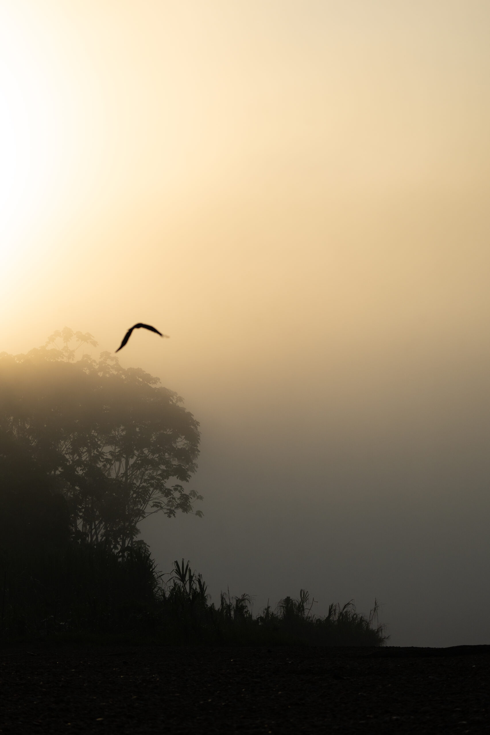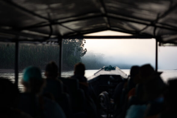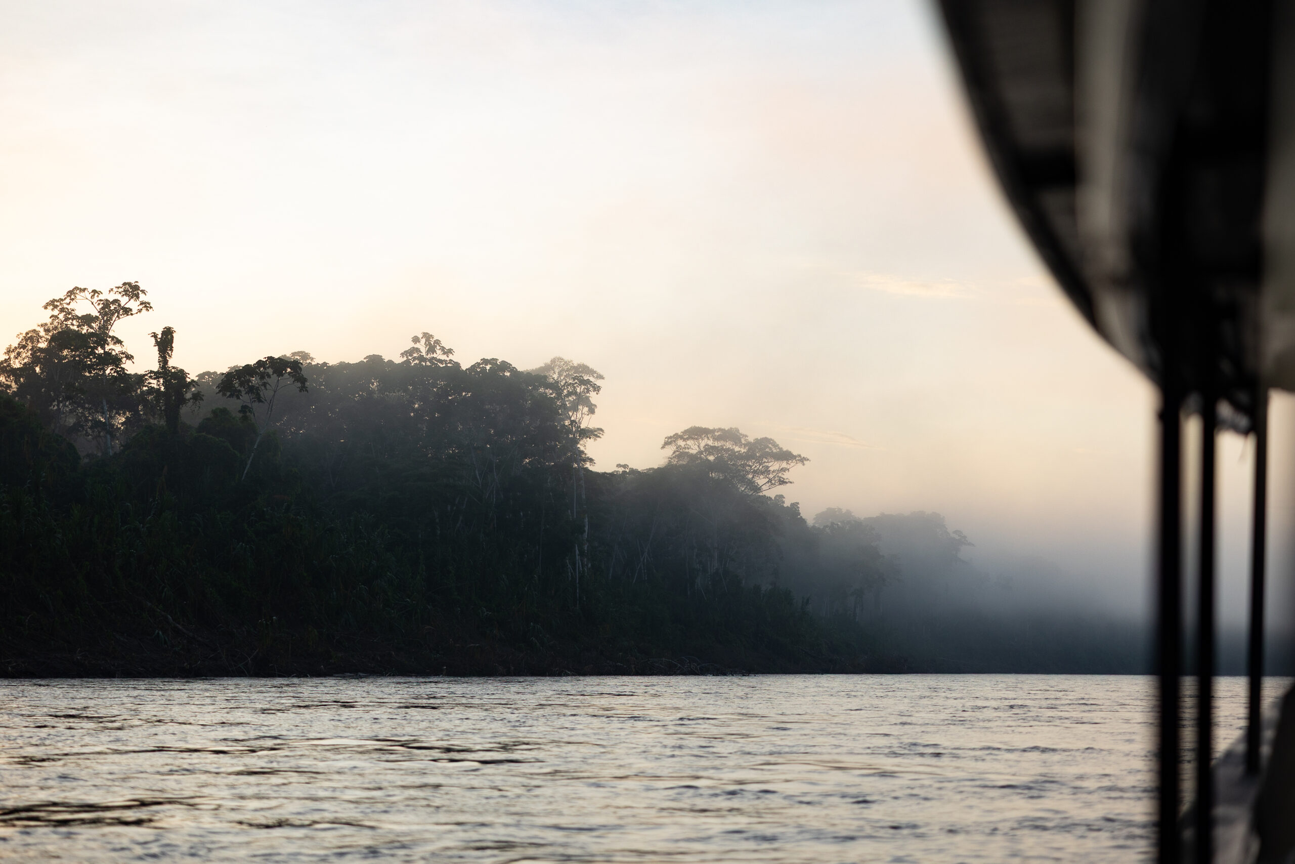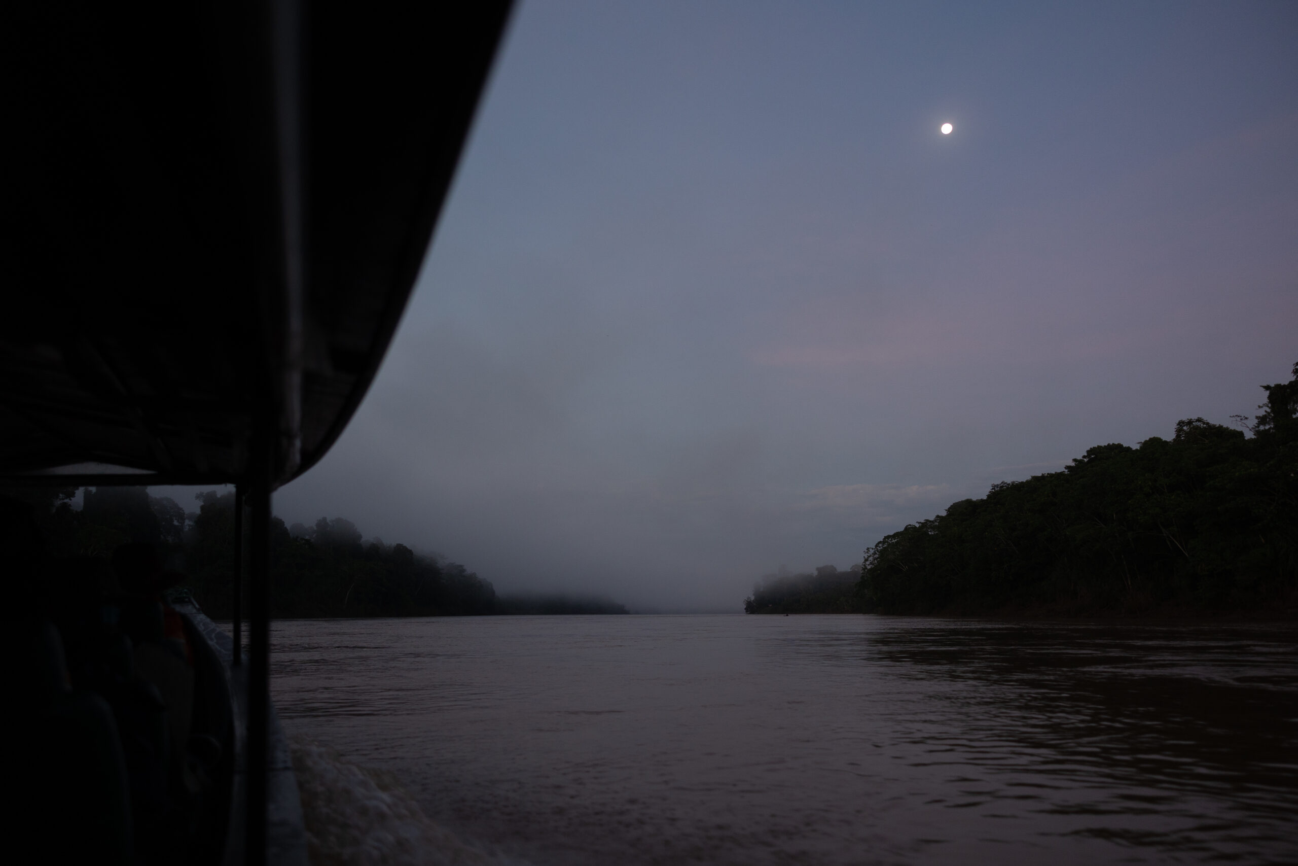 Mjesečina nas prati u stopu, što nam predstavlja jedinu vidljivu svjetlost u apsolutnom mraku koji nas okružuje. Nemam baš nekog izbora osim “ ušuškati“ se i zaštititi od vjetra, nastojati drijemati i čekati vrijeme do prođe. Prolazi ono sporo no, sat vremena kasnije, dan se počinje buditi. Dok na nebu sunce polako zamjenjuje mjesec, gusta magla nadvija se nad rijekom i gustom prašumom. Toliko je ima da s vremenom u potpunosti prekriva nebo, dajući suncu i cijeloj okolini jedan poseban i mističan ugođaj. Ovi prizori buđenja Amazonske prašume nešto su što sam priželjkivao i zauvijek će mi ostati u sjećanju…