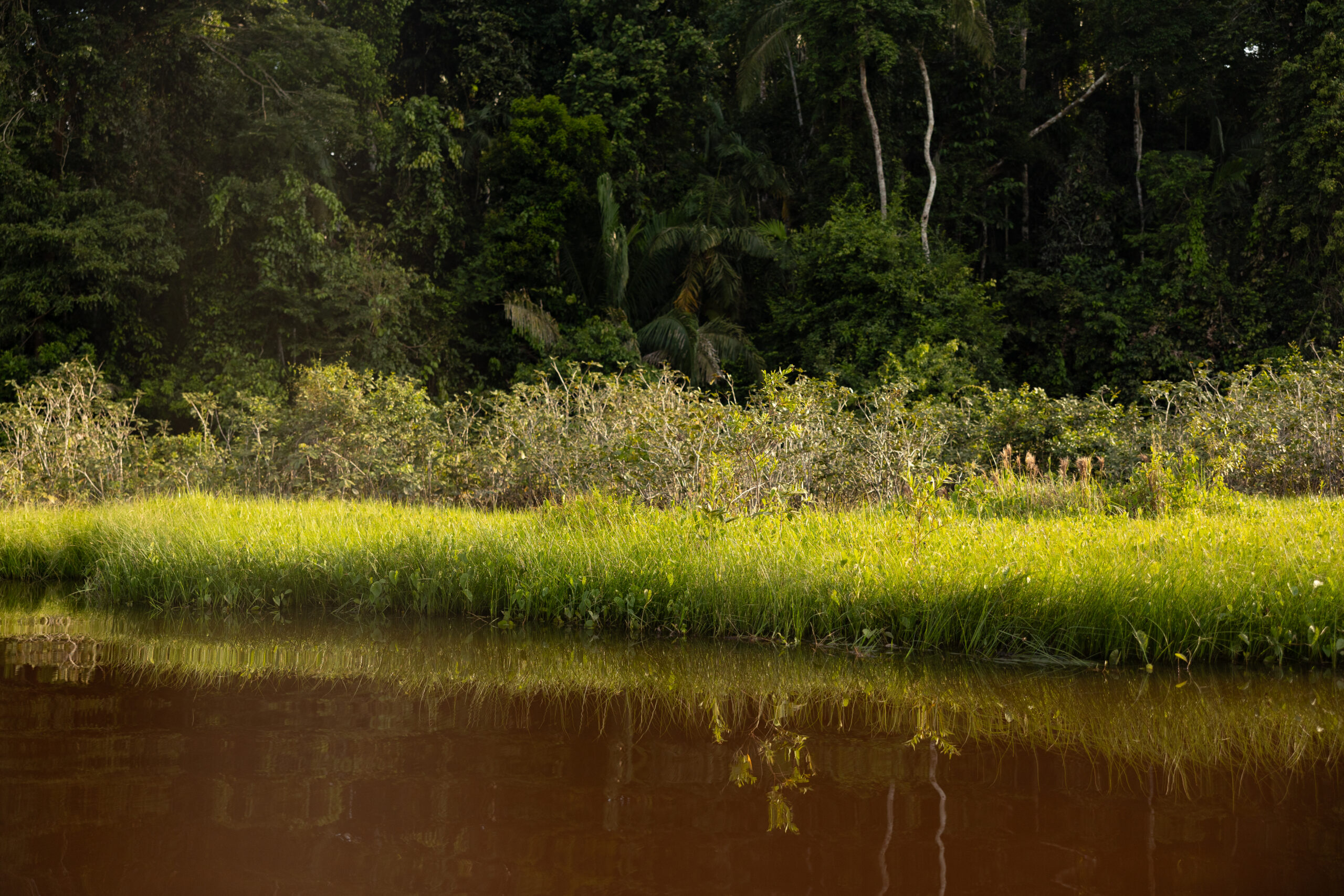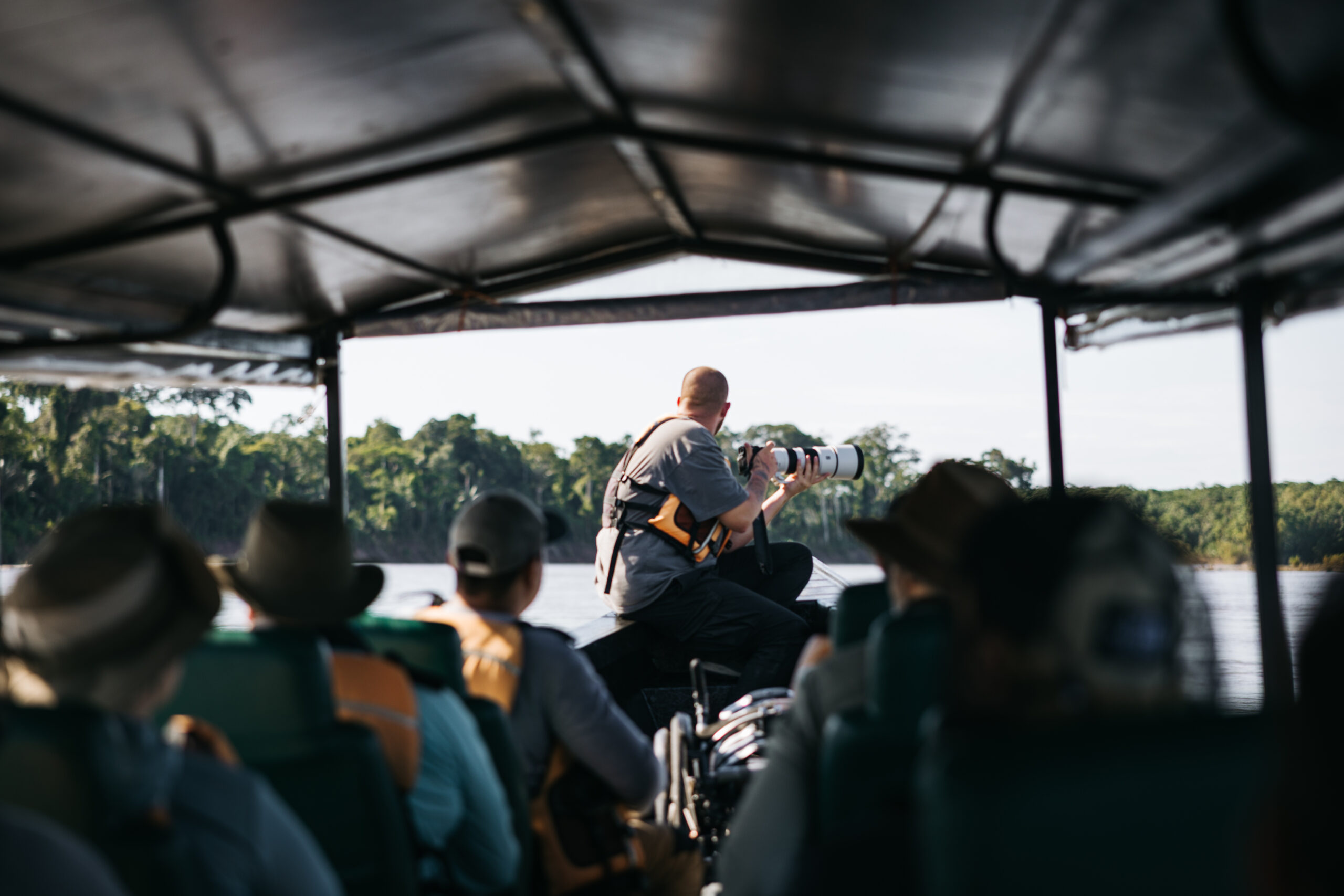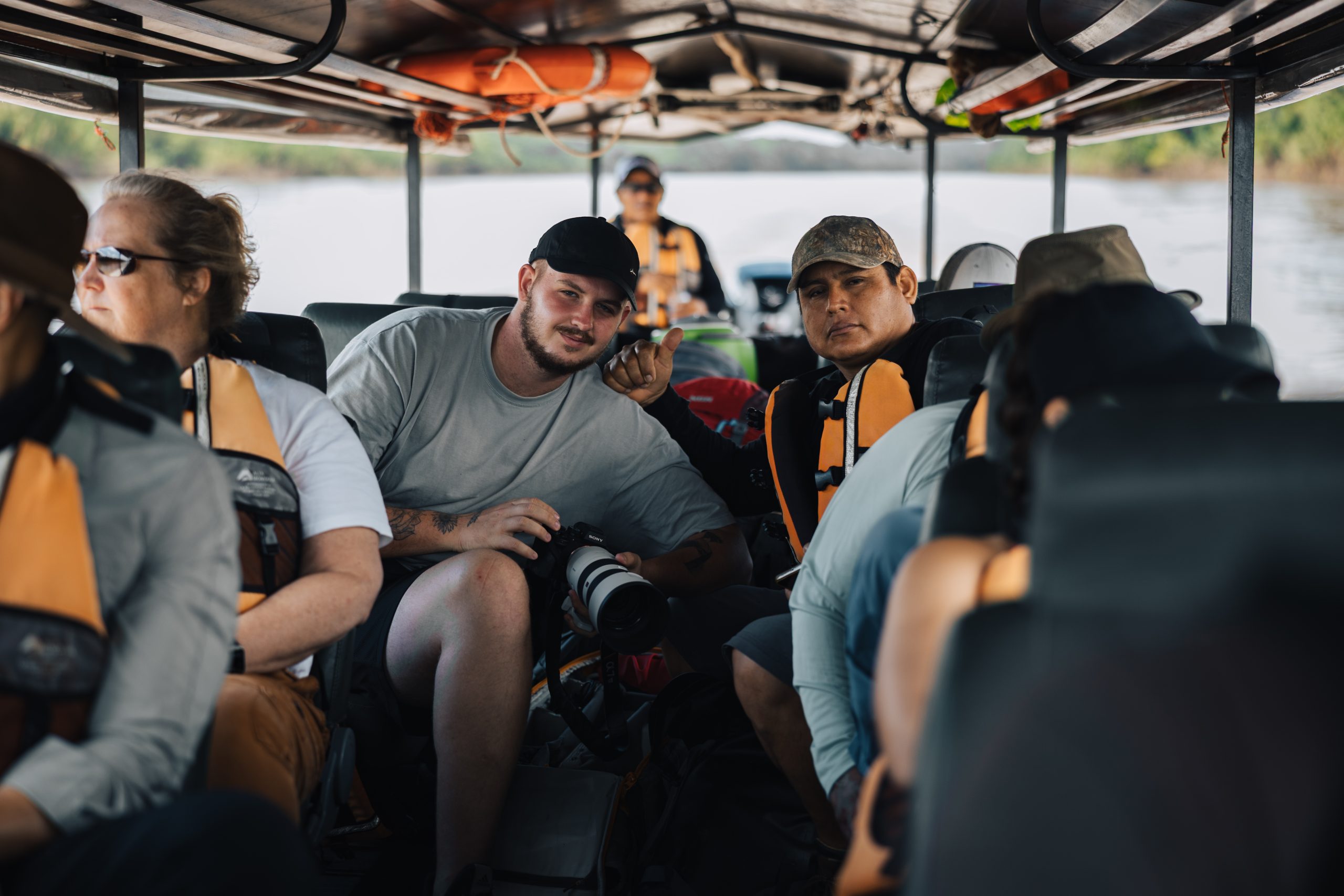 Ukrcavši se na brod, nastavljamo uzvodno, do mjesta gdje ćemo, kako Yuri kaže, imati piknik i jesti doručak. Temperatura već sad prelazi trideset stupnjeva, vlaga u zraku je vjerojatno 100% pa vožnja brodom dođe kao dobar način za rashladiti tijelo. Sada za razliku od ujutro možemo promatrati obalu rijeke pa tako uočavamo raznovrsne ptice, kajmane kako se sunčaju, kornjače i grupu od pet kapibara.