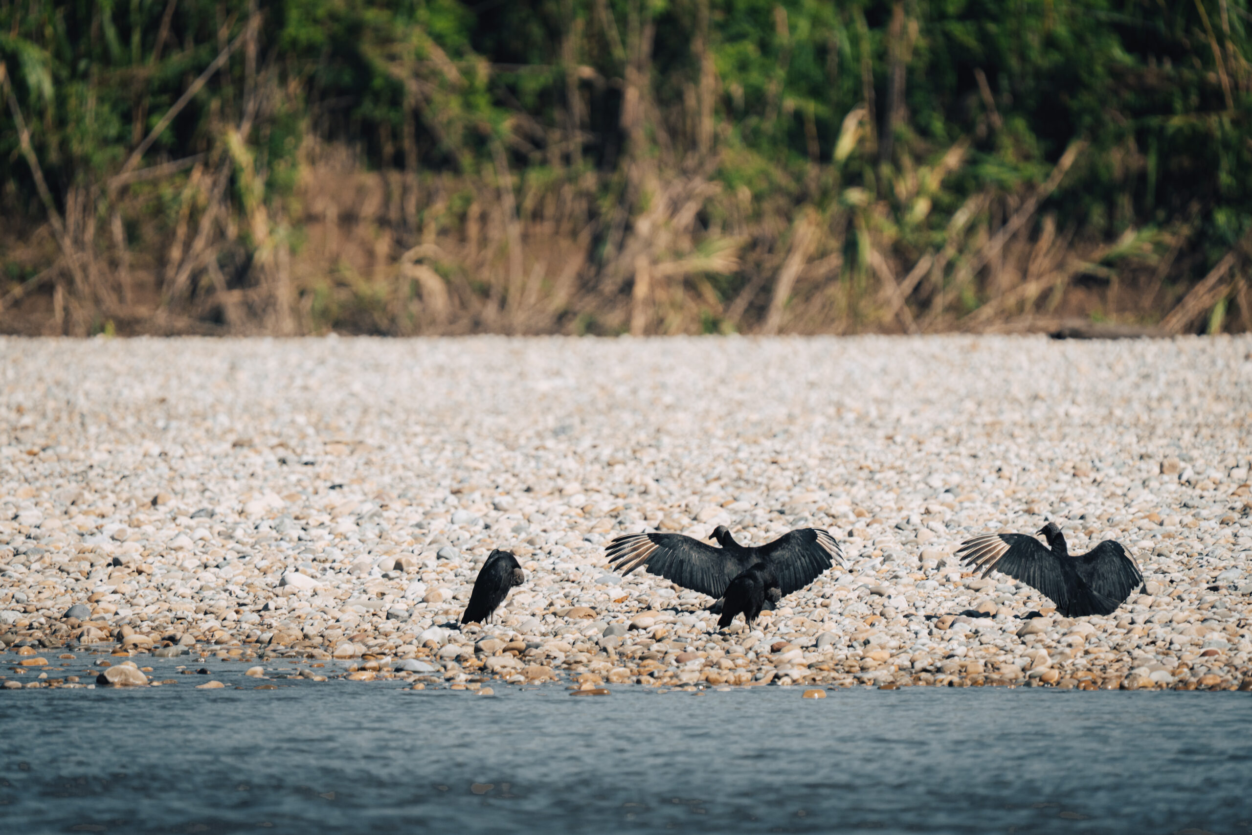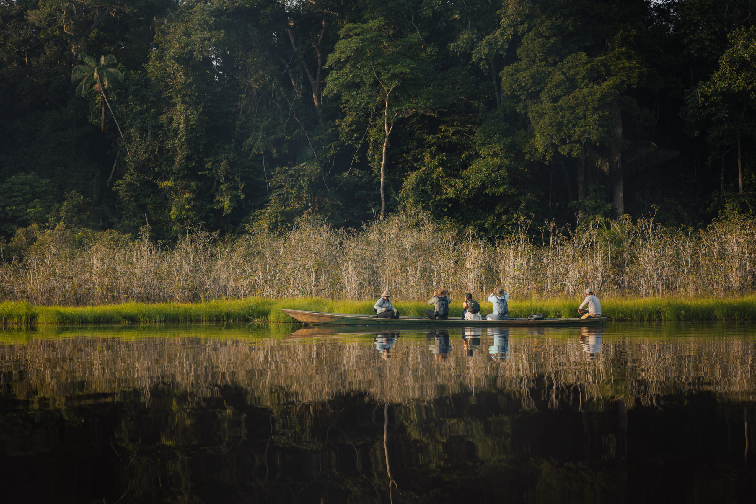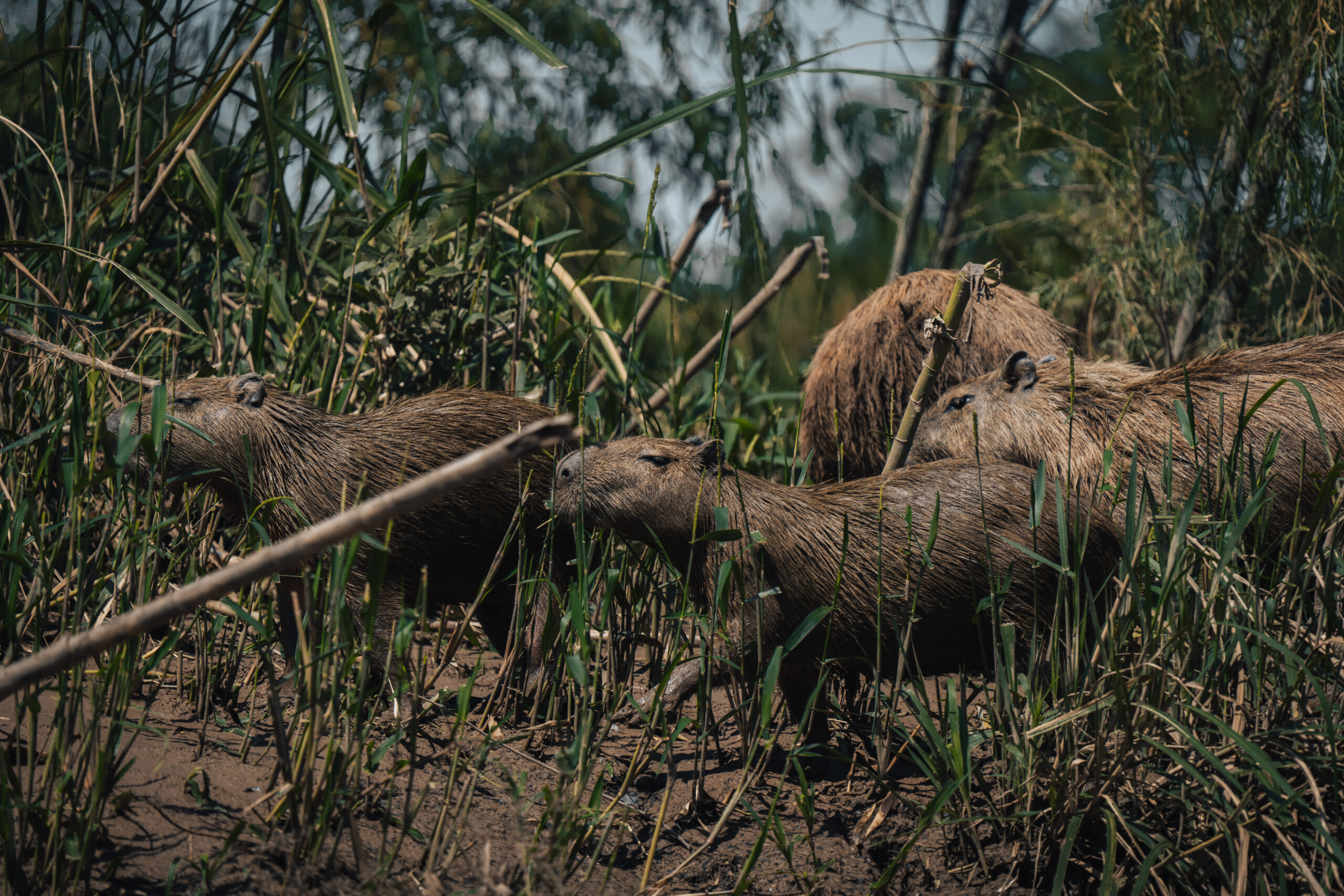 Ukrcavši se na brod, nastavljamo uzvodno, do mjesta gdje ćemo, kako Yuri kaže, imati piknik i jesti doručak. Temperatura već sad prelazi trideset stupnjeva, vlaga u zraku je vjerojatno 100% pa vožnja brodom dođe kao dobar način za rashladiti tijelo. Sada za razliku od ujutro možemo promatrati obalu rijeke pa tako uočavamo raznovrsne ptice, kajmane kako se sunčaju, kornjače i grupu od pet kapibara.