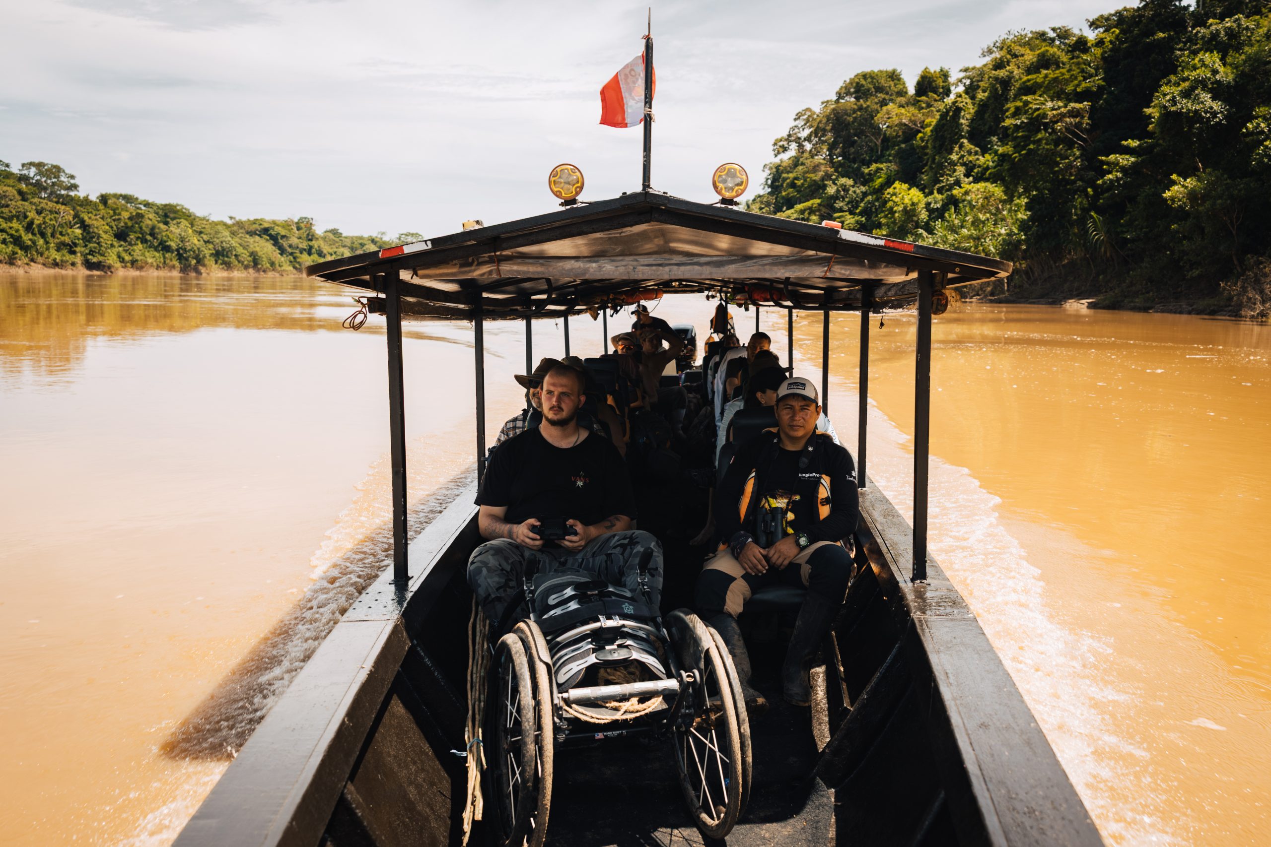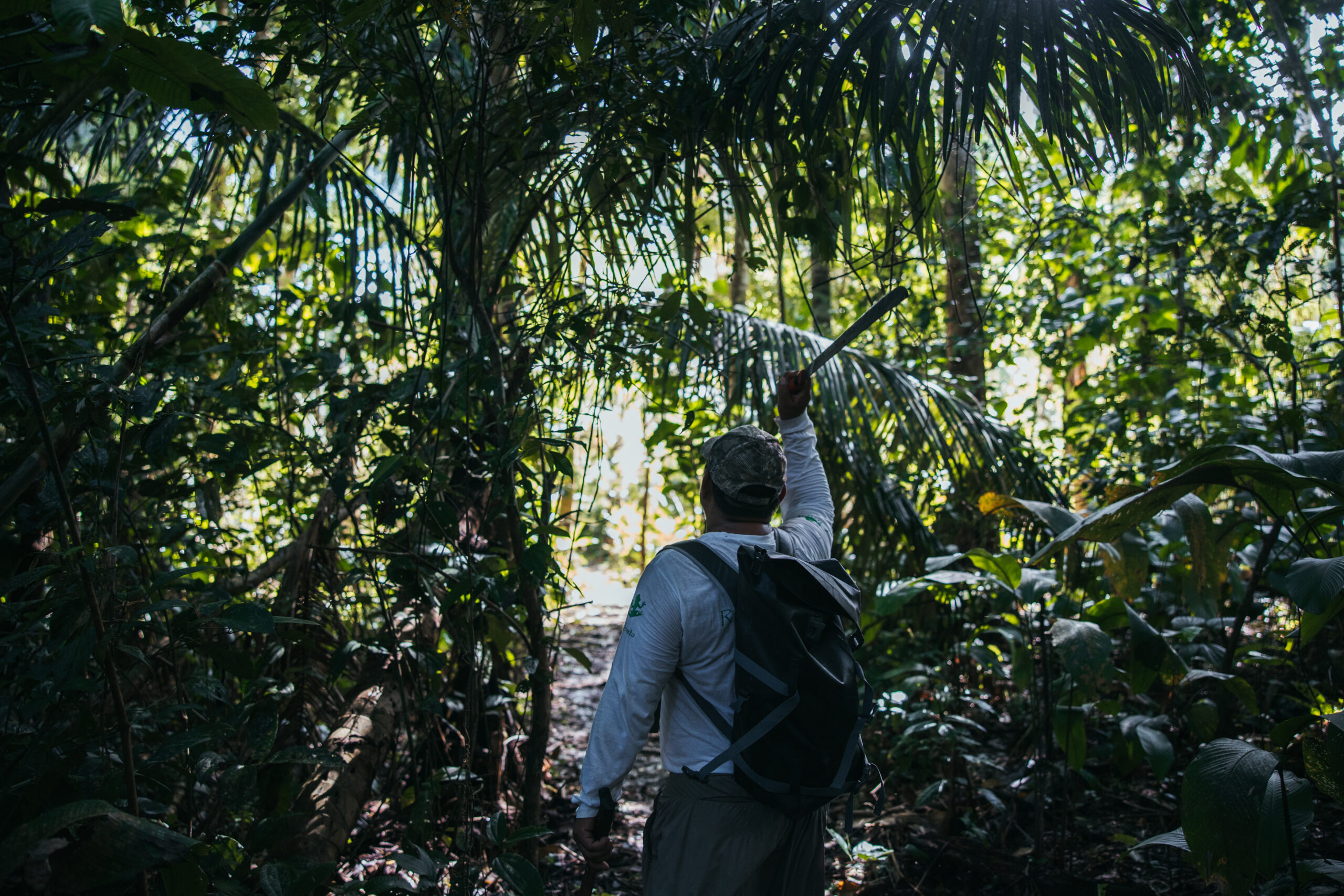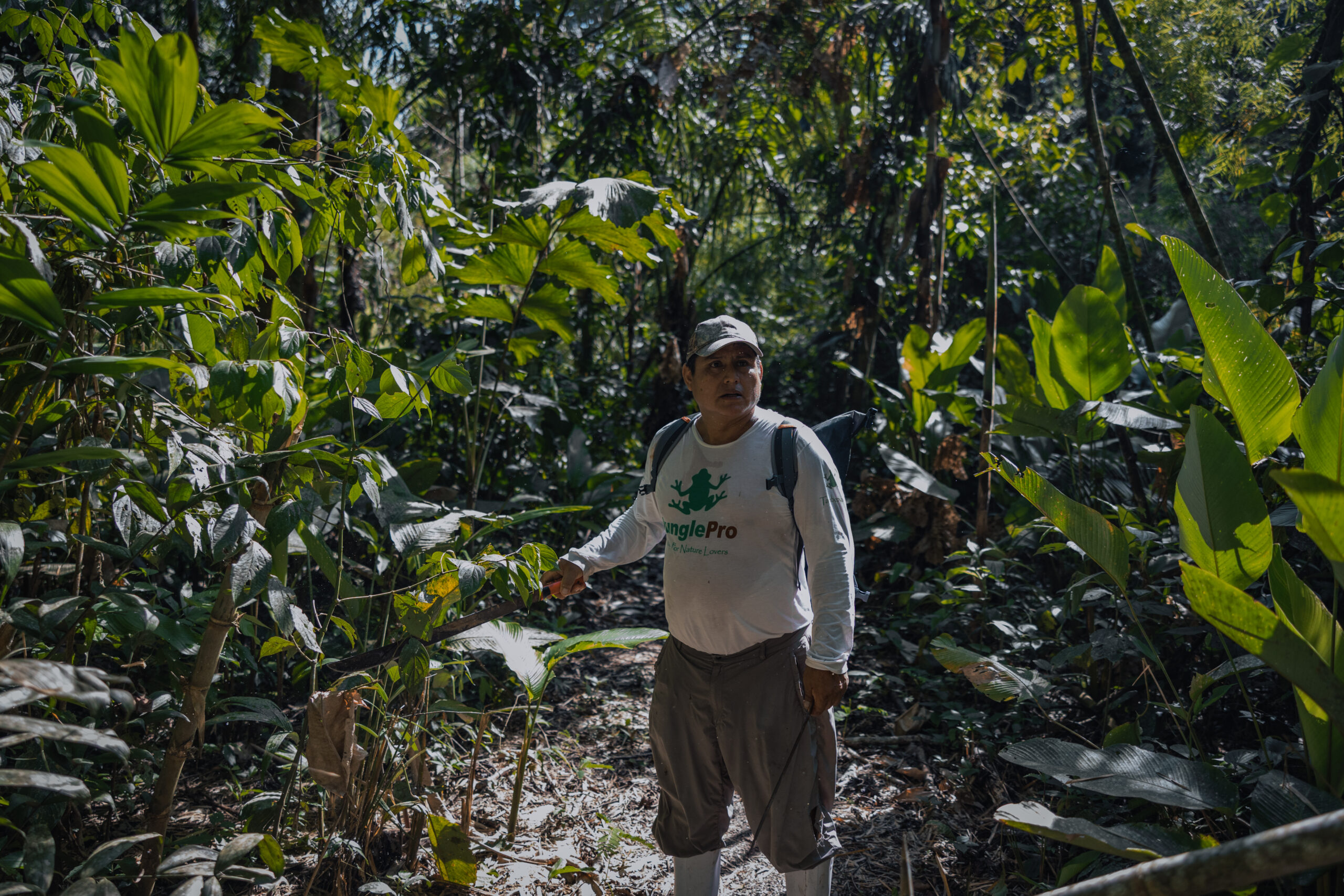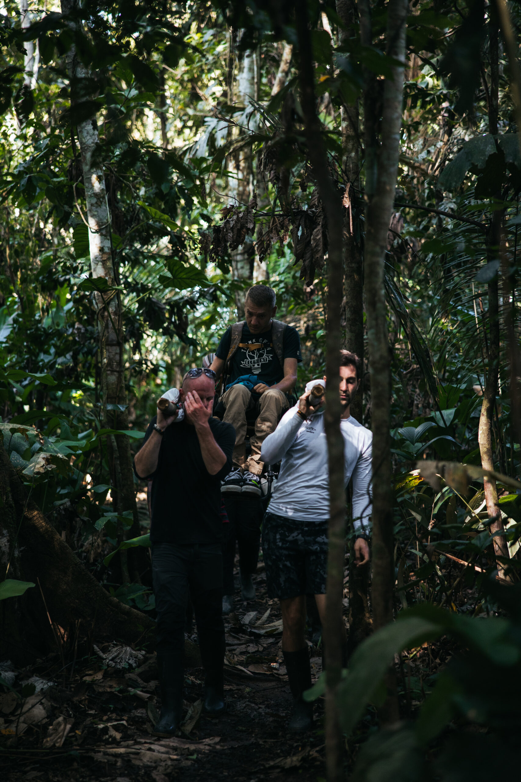Nakon ručka okupljamo se u predvorju i tu upoznajem dva lokalca koji bi nam trebali pomoći stići do najudaljenijeg jezera. Osigurao ih je Oscar i kao što smo unaprijed dogovorili, sa sobom donose dva dugačka bambusova štapa radi lakšeg nošenja. Po informacijama koje sam dobio o terenu, moja pretpostavka bila je da će me tako biti najlakše nositi. Ovaj treking nam je zapravo predstavljao najveći izazov i bio je jedina stvar koja je radi svoje težine i udaljenosti bila pod najvećim upitnikom od svega u Amazoni.