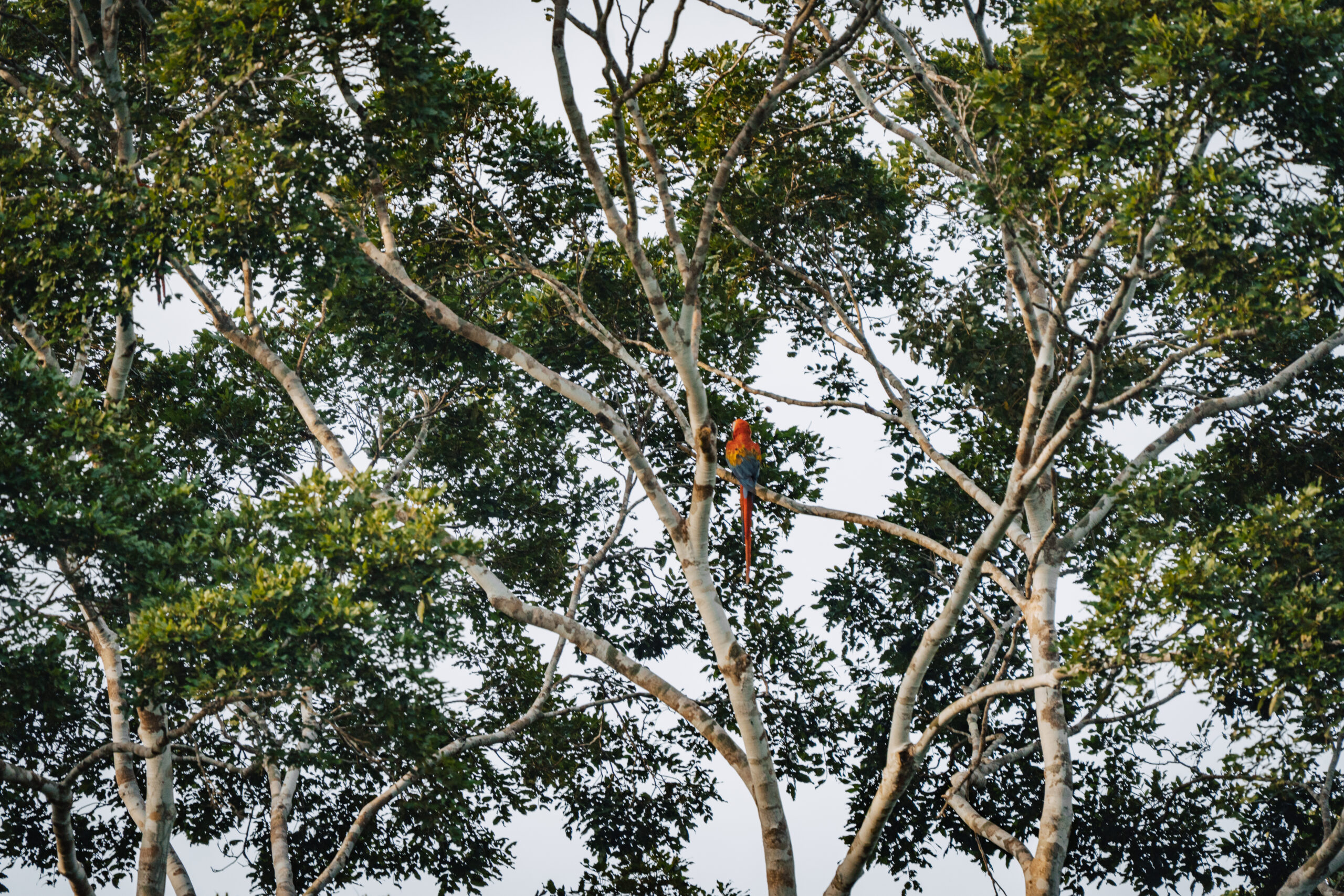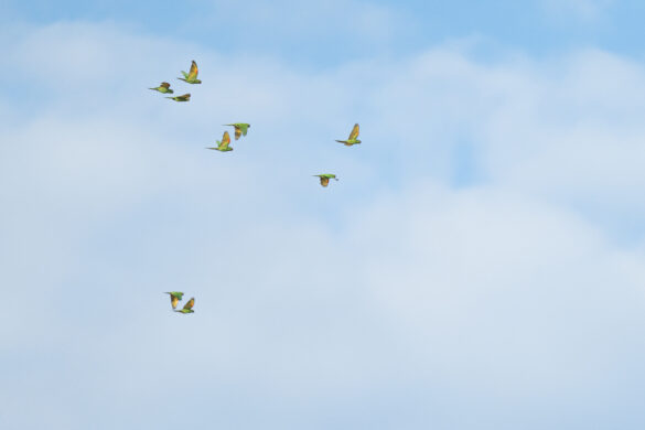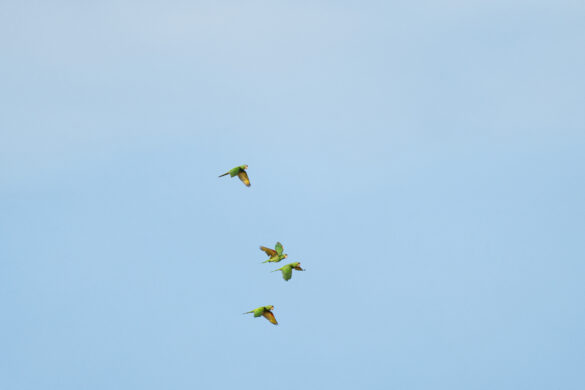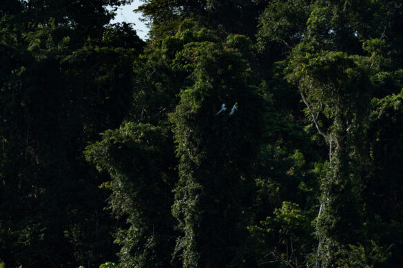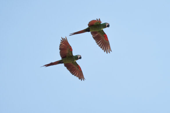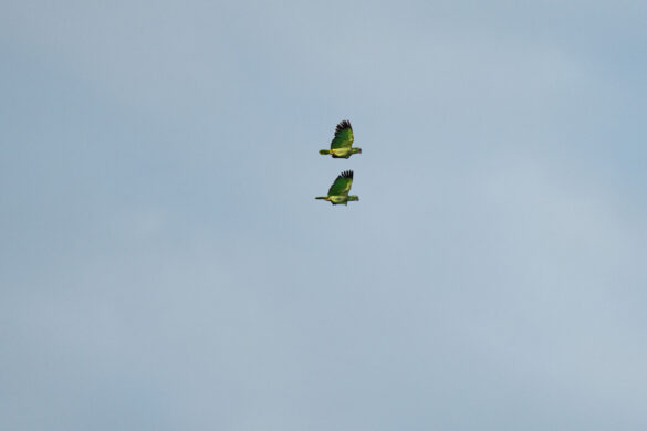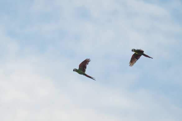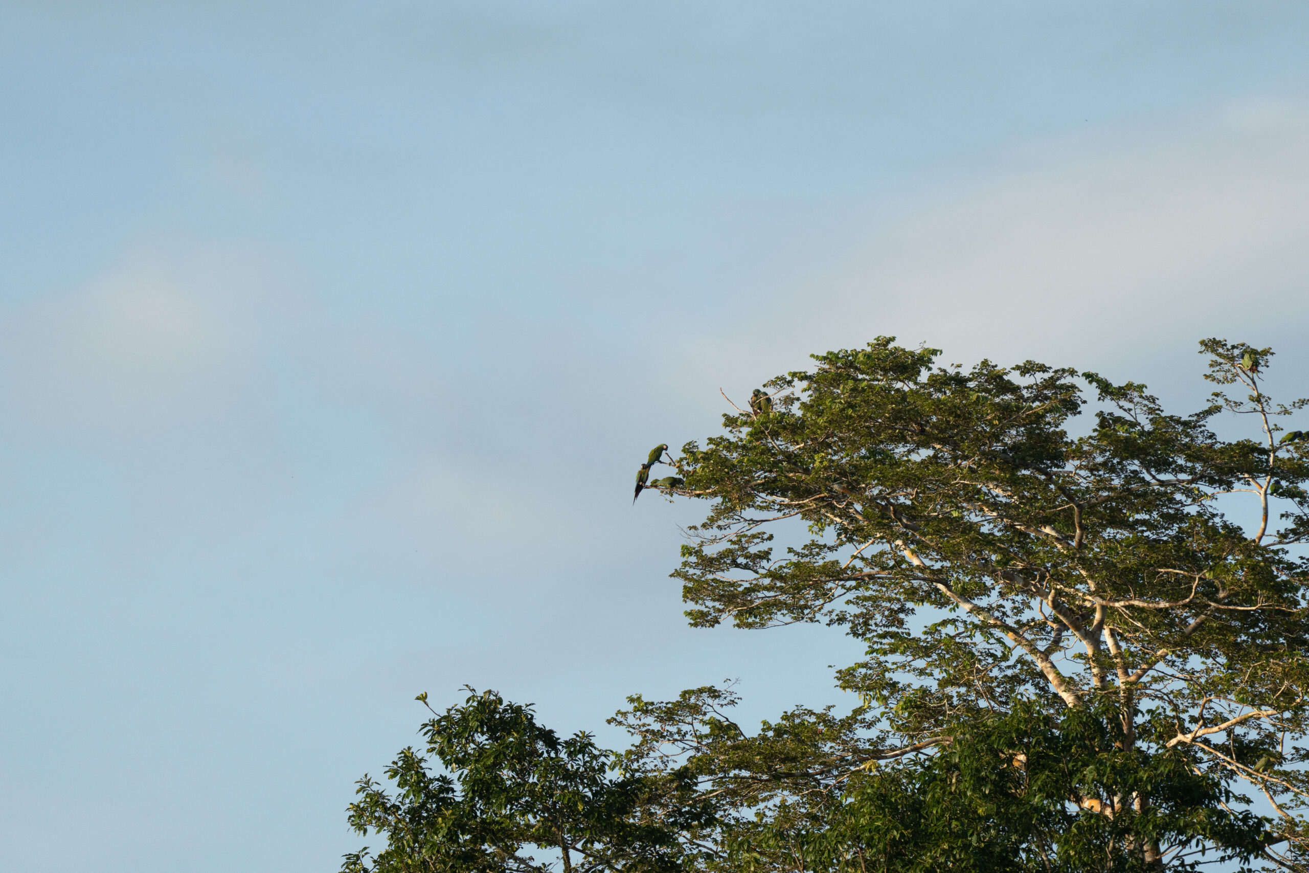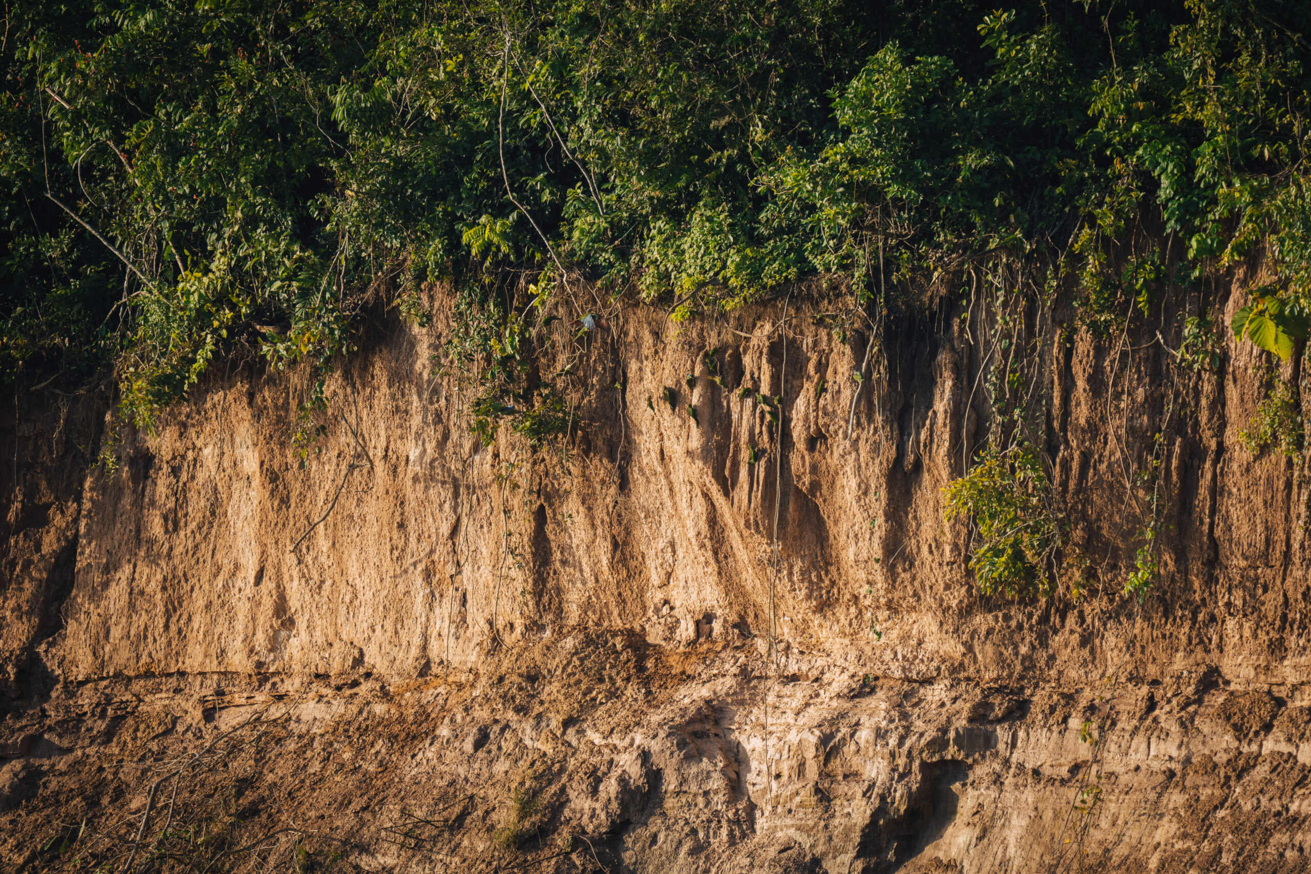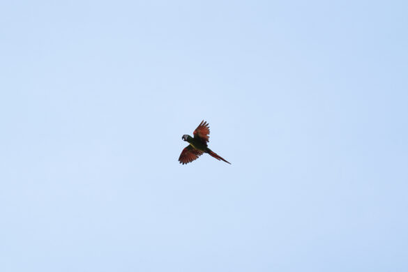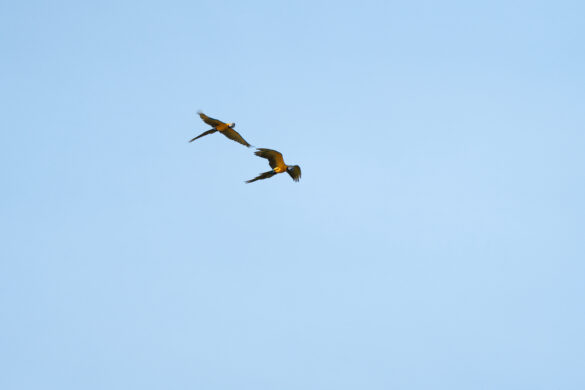 Kako magle nestaje, a sunce se sve više podiže, na zemljanoj litici uočavamo sve veći broj papiga. Sada ih je ovdje već sigurno par tisuća. Puno ih je različitih, za većinu nismo nikada niti čuli, ali jednu vrstu ne možemo ne primijetiti, čuvenu aru. Primjećujemo crvene i plave, ali i nekakve neobičnih boja. Iako volim papige, buka koju sve zajedno proizvode nešto je što, vjerujem, nitko dugo ne bi htio trpjeti. Objektivi i mobiteli nam nažalost ne „dosežu“ do litice pa nekako uspijevamo mobitelima slikati preko teleskopa, nadajući se da će od toga ipak biti nešto…