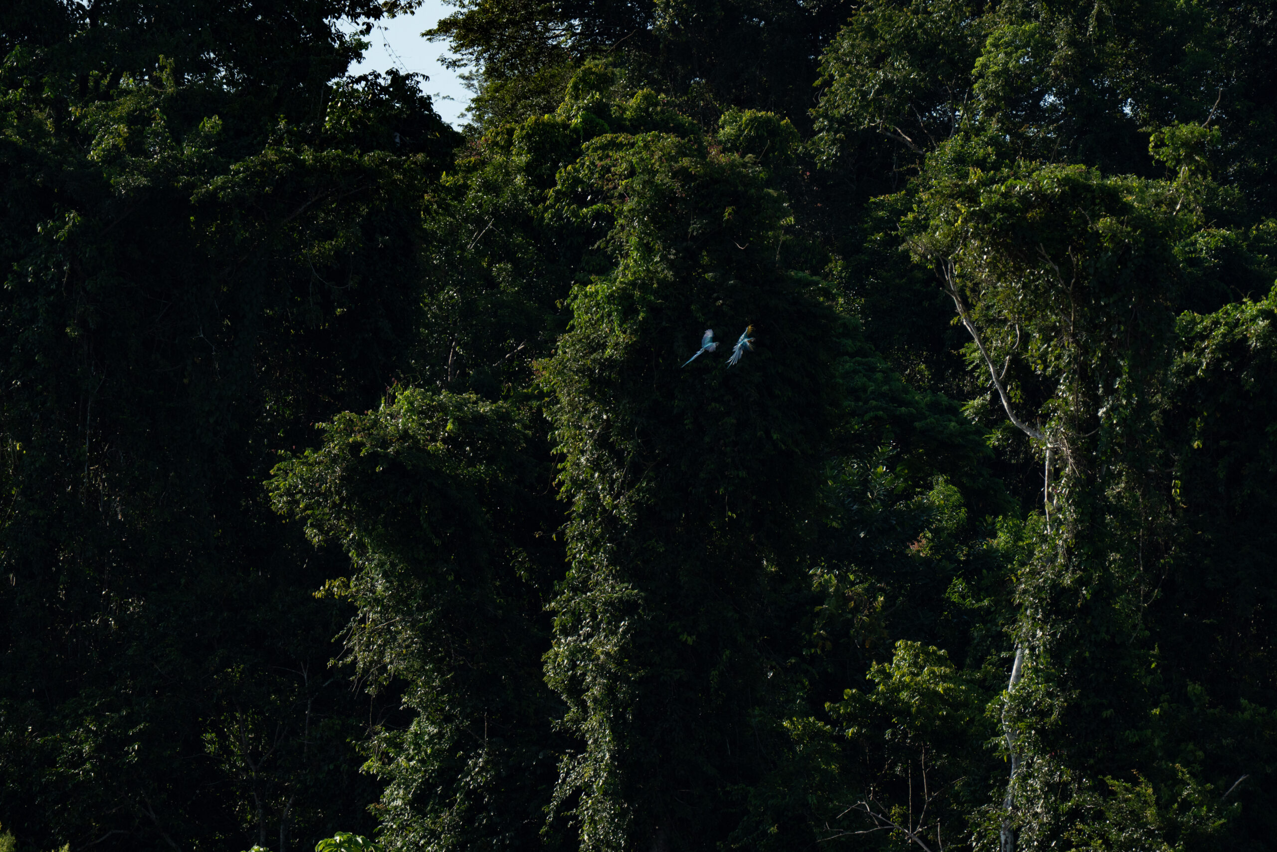 Prošavši veliku tablu s natpisom „Tambopata Reserva Nacional“ Yuri ovjerava naše karte za park i nakon dva i pol sata vožnje stižemo do odredišta. Mjesto na kojem se iskrcavamo nalikuje delti rijeke, nešto nalik šljunčanoj obali rijeke Save u Zagrebu. Stacioniramo se svega stotinjak metara od mjesta iskrcaja, na vidikovcu sa kojega bi uskoro trebali moći promatrati okupljanje i hranjenje papige. Sve to trebalo bi se odvijati na zemljanoj litici na koju gledamo preko puta rijeke, na nekakvih stotinjak metara od nas. Iako je još rano, dok Yuri postavlja dalekozor za promatranje, već svjedočimo prvim preletima papiga iznad nas.