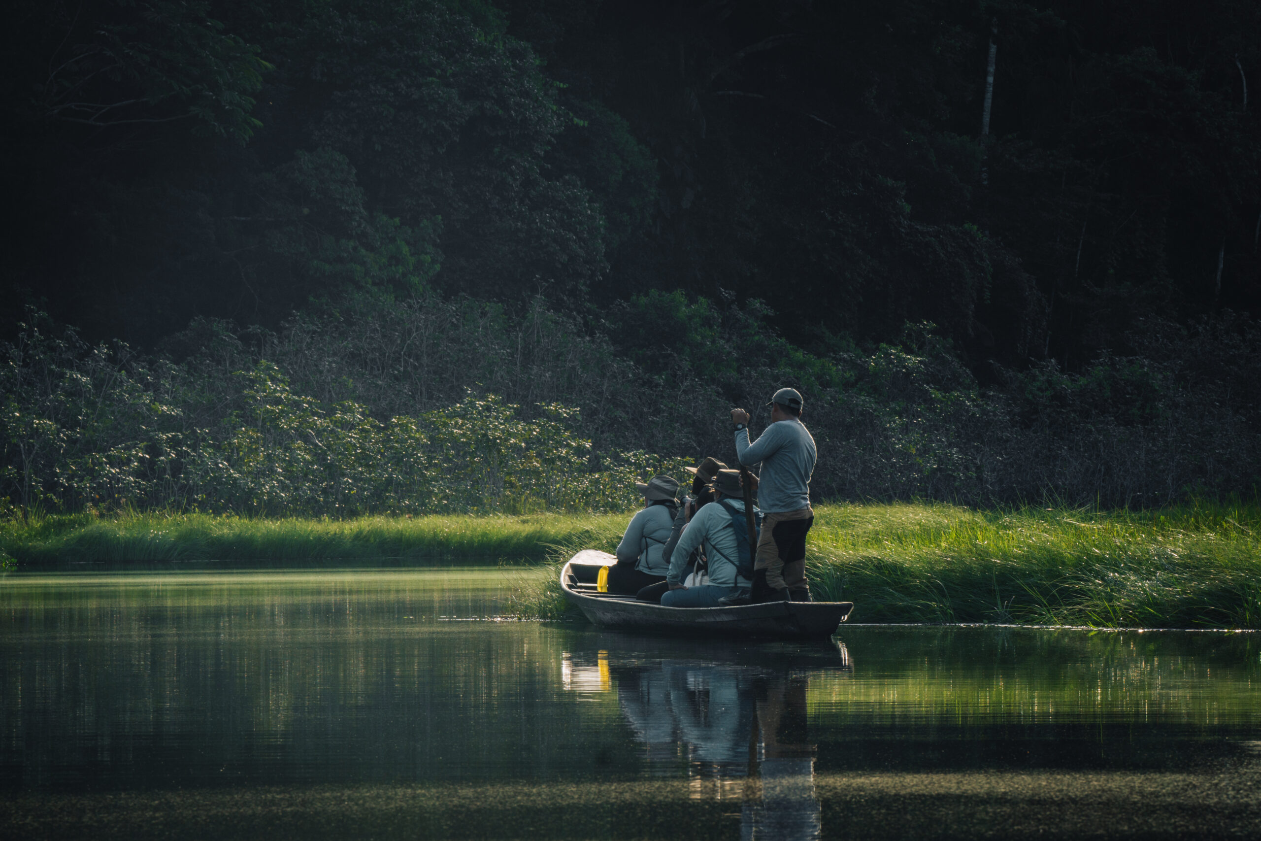 S dolaskom mraka Yuri nam govori da je vrijeme za pokret. Uzimamo osnovno, lampe, jer to je jedino što će nam trebati! Spuštamo se niz stepenice, ukrcavamo se na brod i krećemo u noćnu potragu za kajmanima. Naravno, postoji šansa vidjeti i jaguara, ali ta šansa je toliko mala da se niti ne nadam.